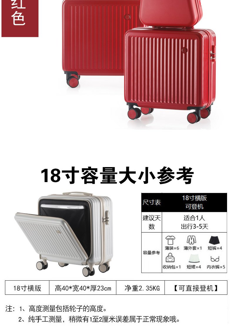 18寸登机箱前置开盖行李箱万向轮拉杆箱男女旅行皮箱 18寸1个