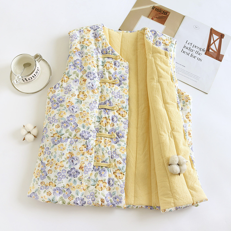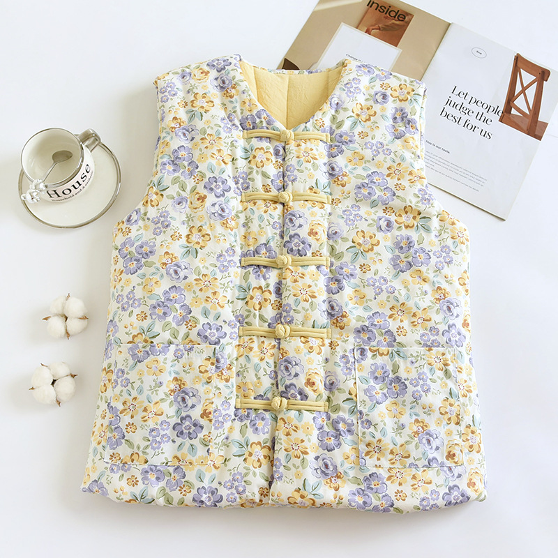 M2秋冬棉花中式马甲女中国风复古马夹修身 文艺范坎肩背心HLY