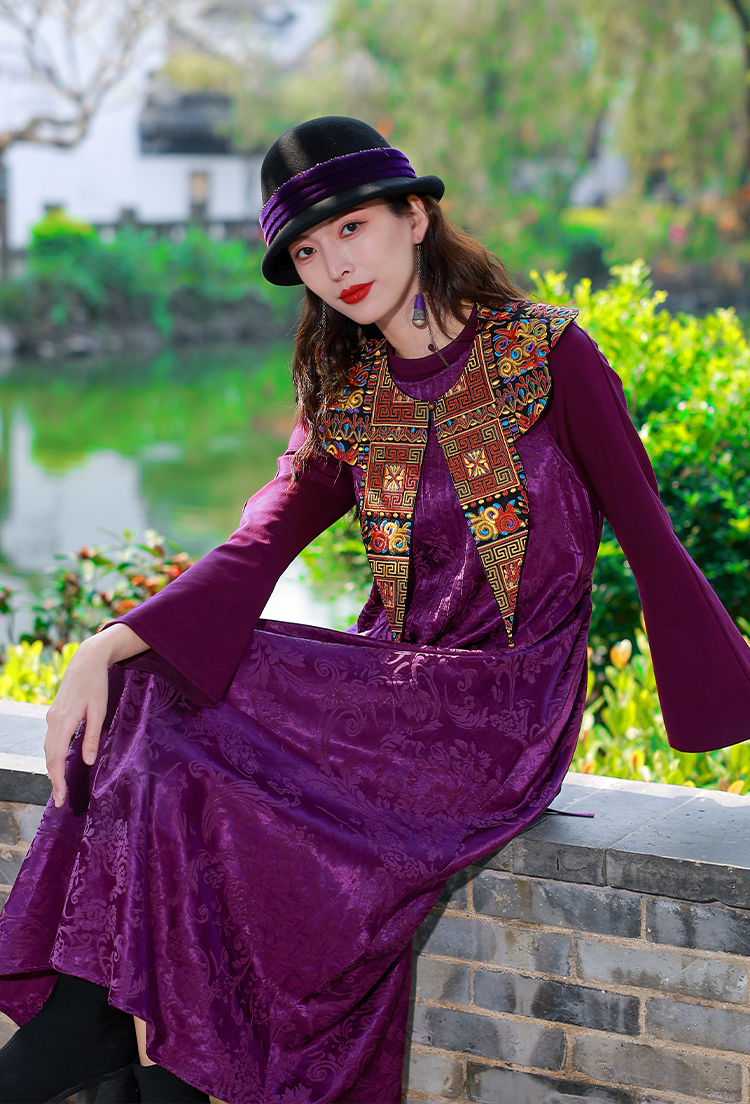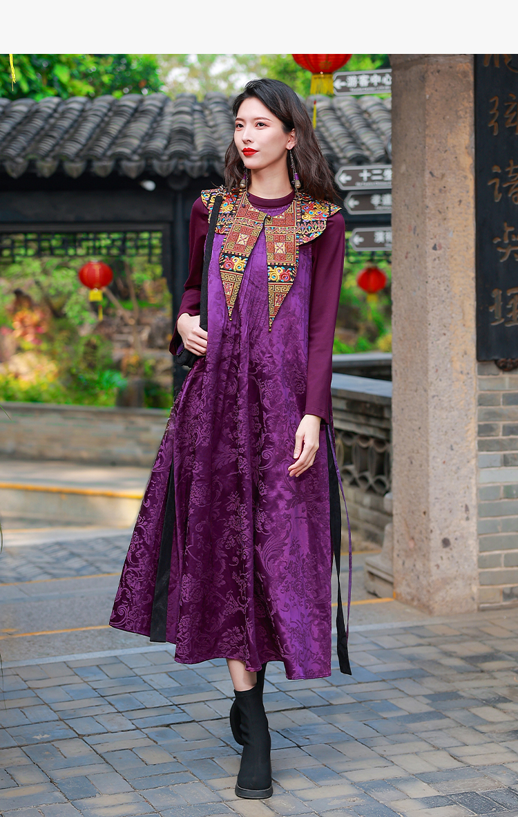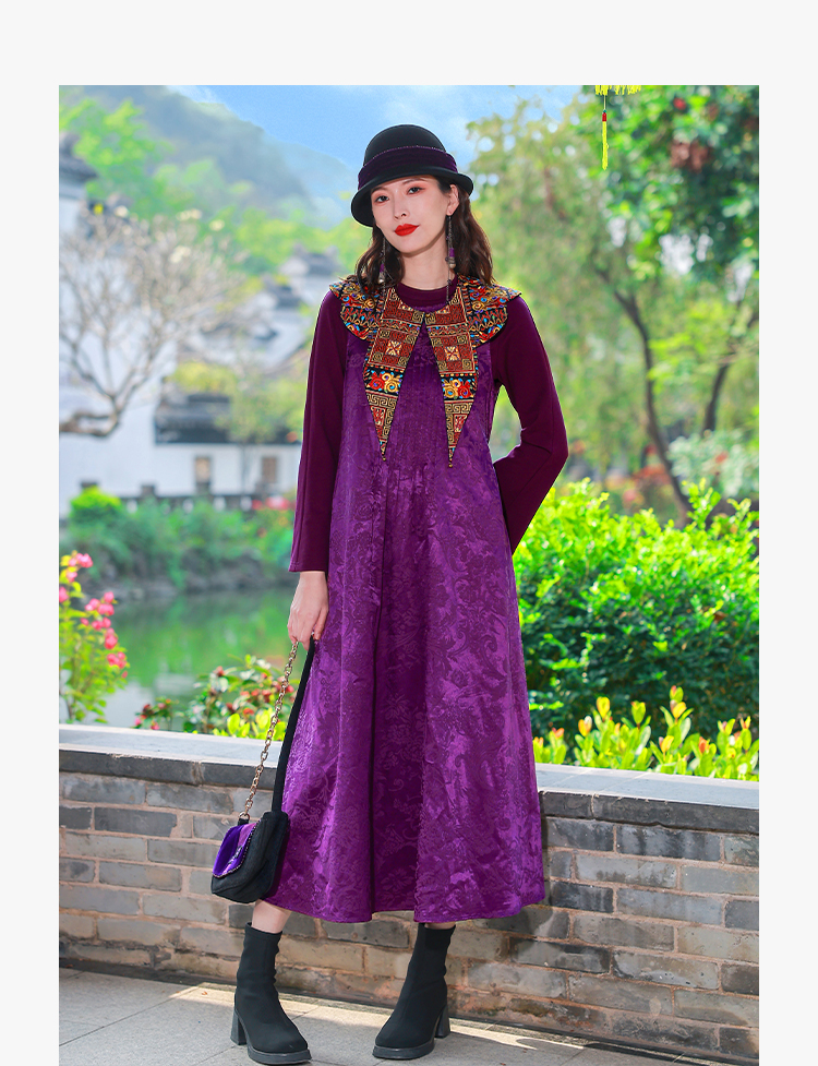 【2026春节款】绣披紫韵云肩连衣裙 | 现货加急发