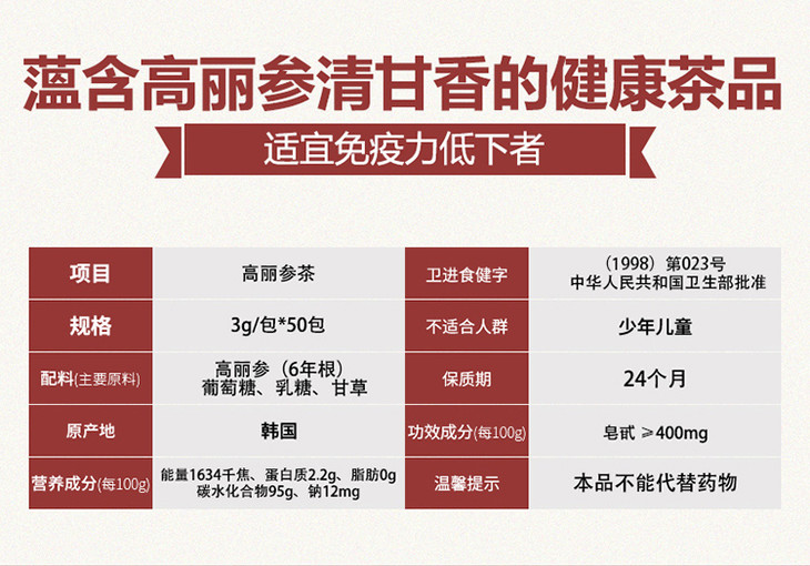 第二款:6 年根高丽人参茶,3 g * 50 包