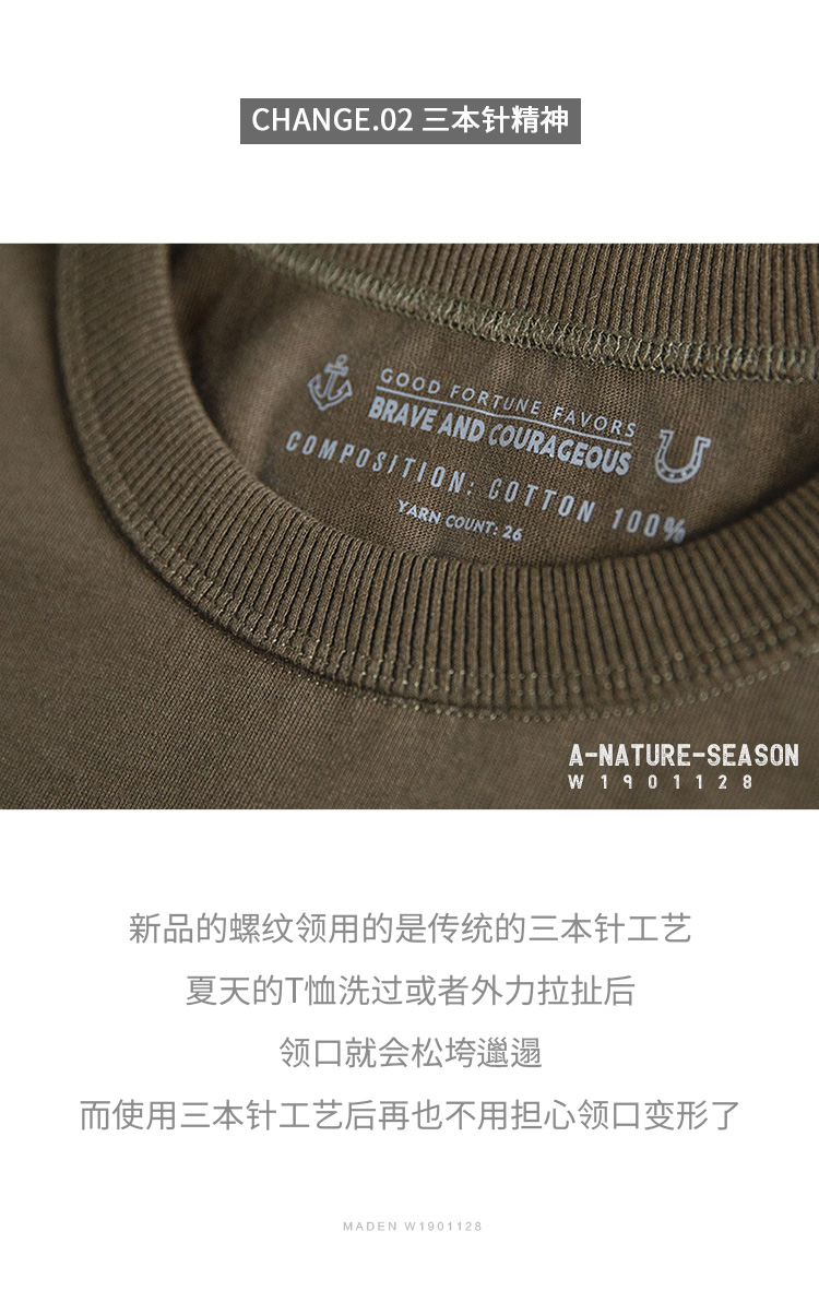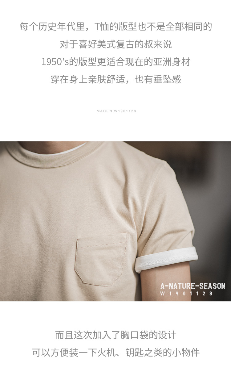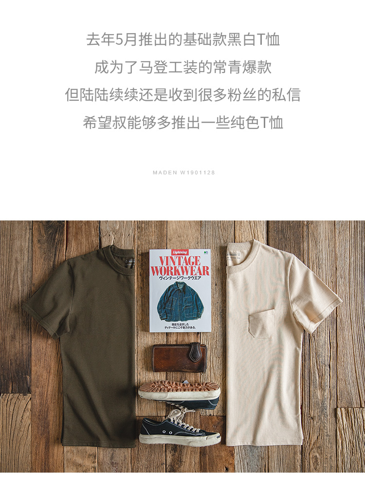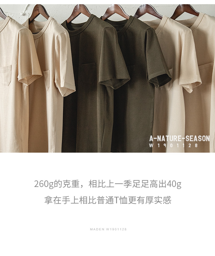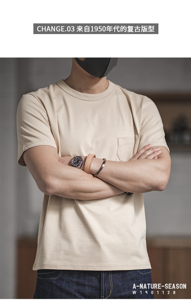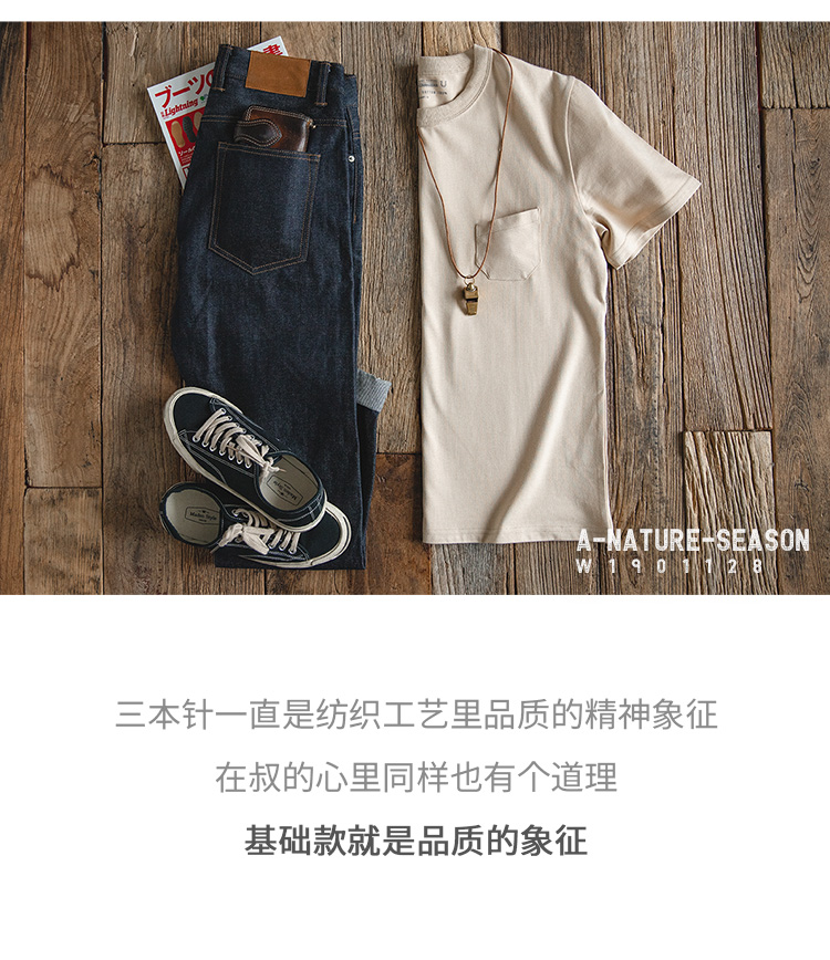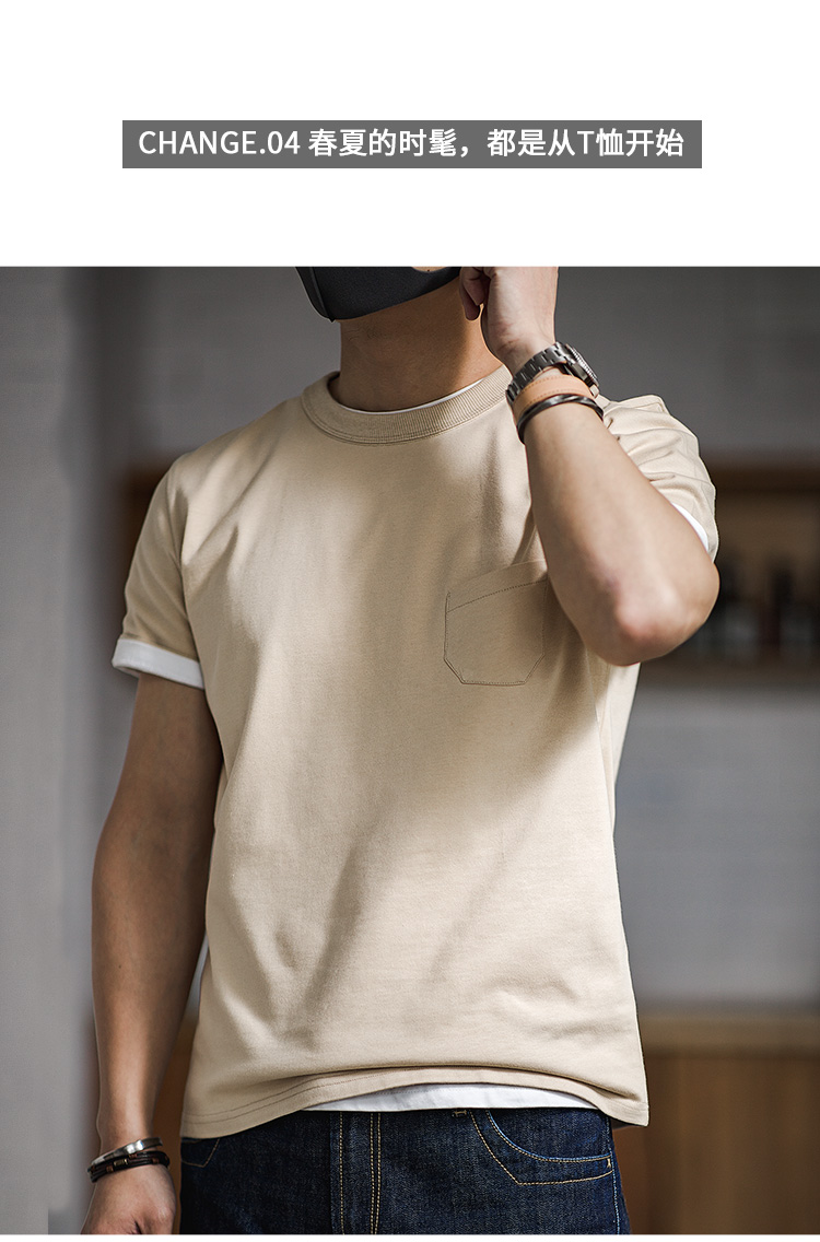 工装优选 美式复古重磅口袋三本针t恤阿美咔叽纯棉短袖打底衫男夏