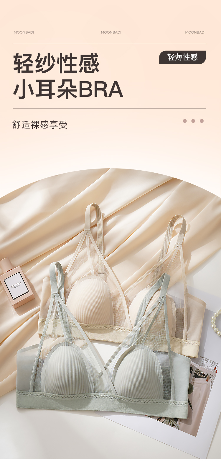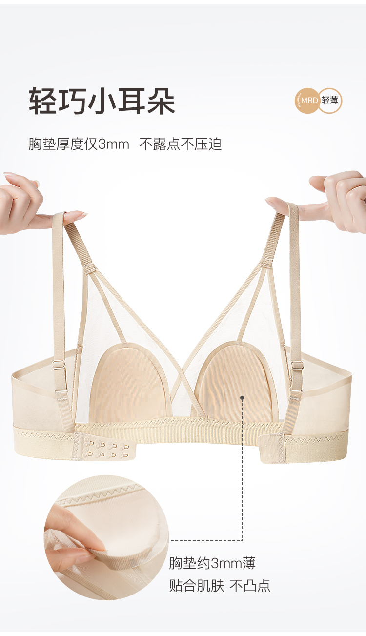 性感兔耳杯轻薄透气网面不凸点内衣舒适有型承托无钢圈文胸罩流沙遐玉