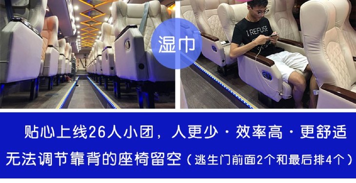 | 交通 | 全程空调旅游巴士:可选更舒适浪漫的星空舱/织梦舱(详见图文版块)因路程遥远,建议选择 |