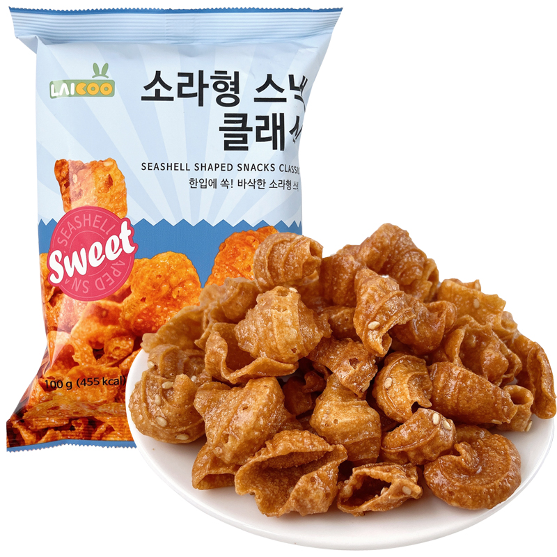 韩国进口涞可海螺猫耳朵酥脆片100g海螺形酥