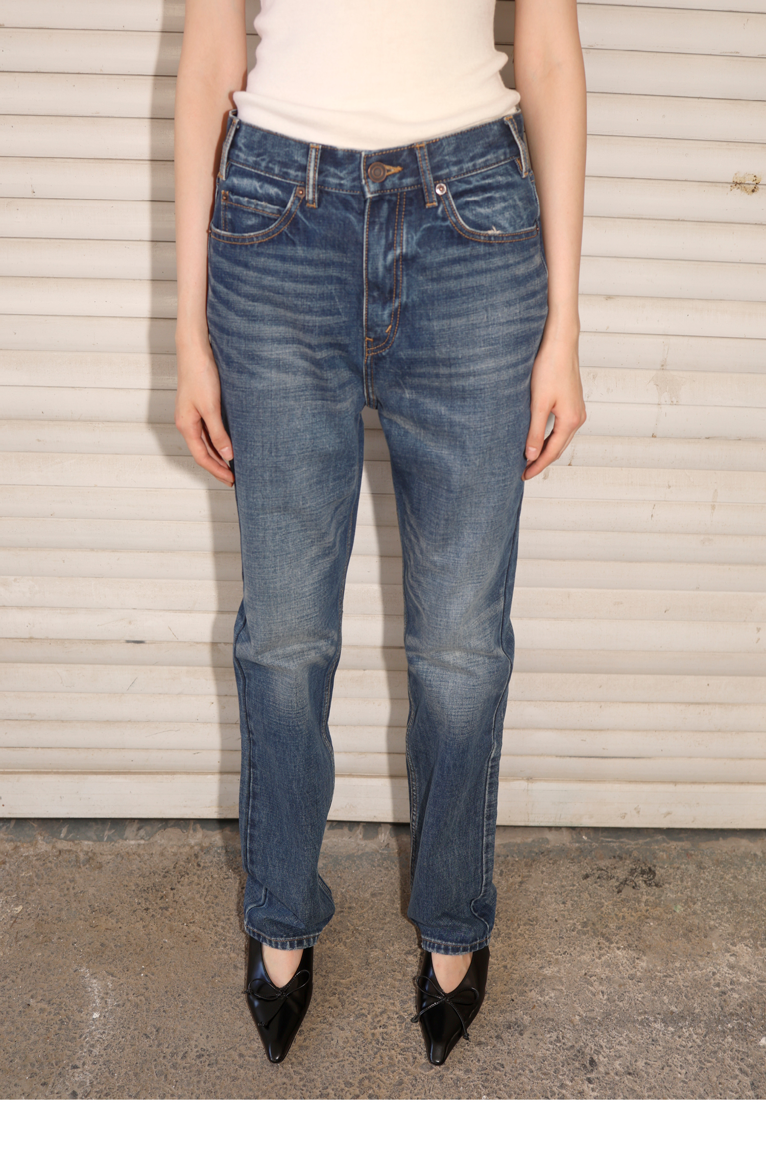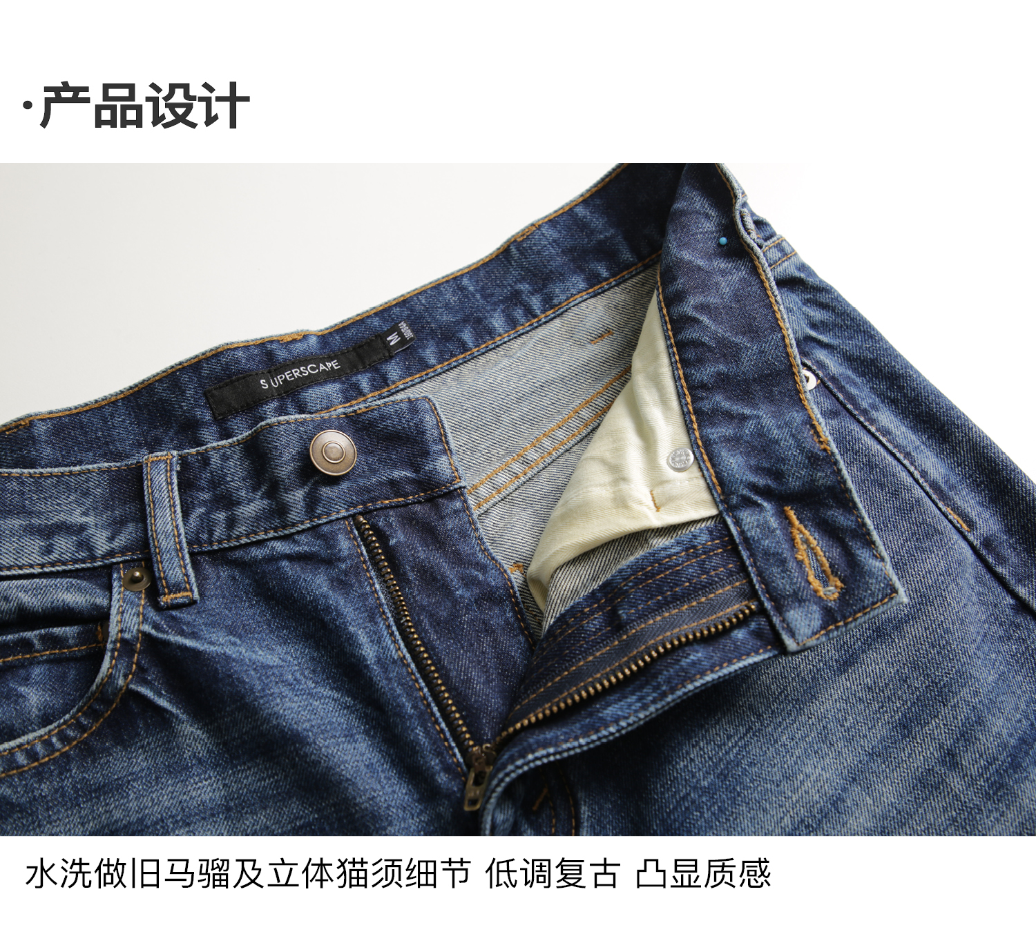 【8/25新品】素舶 经典靛蓝全棉牛仔舒适透气立体猫须复古水洗牛仔小脚裤