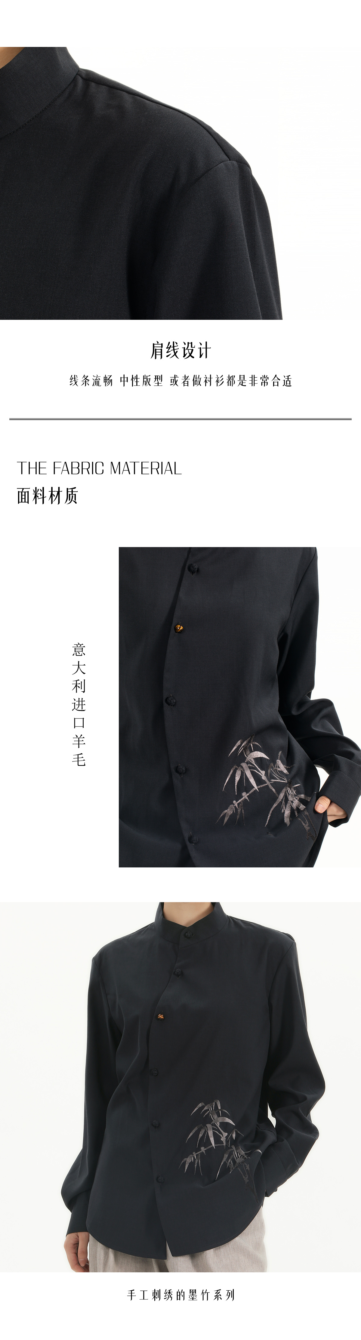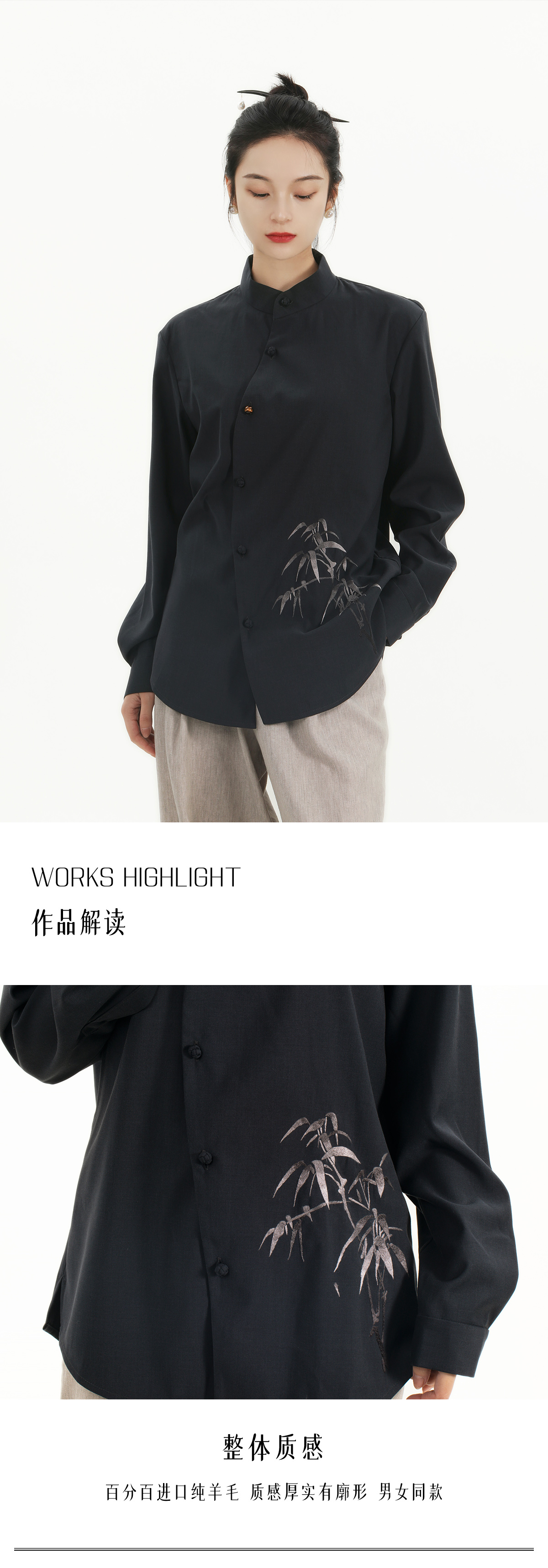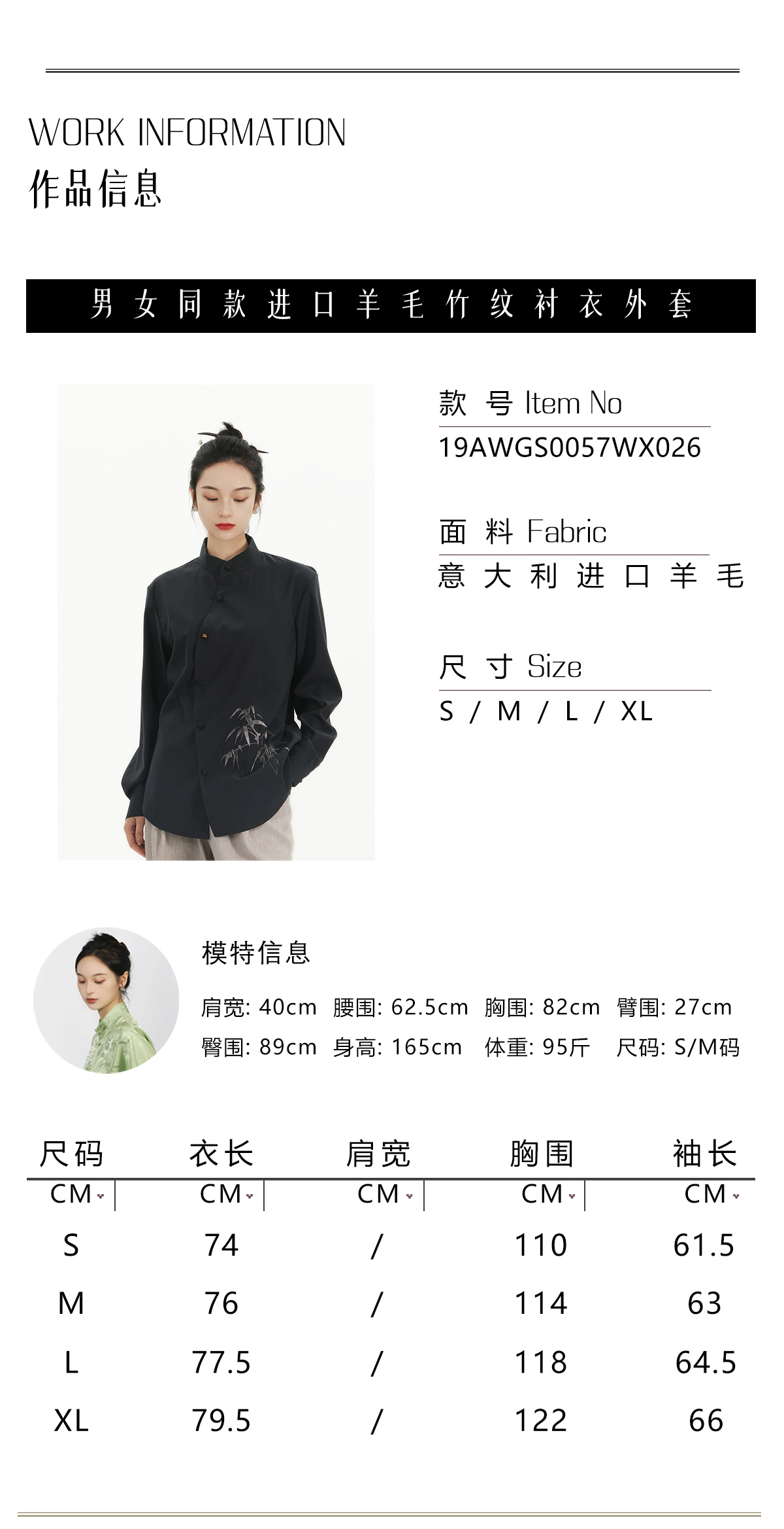 微瑕秒杀| 盛唐牡丹 |市隐系列男女同款进口羊毛竹纹衬衣外套[特价品](特殊商品不退不换)