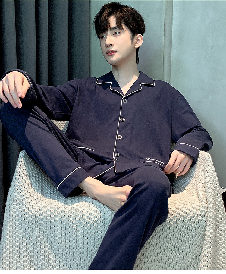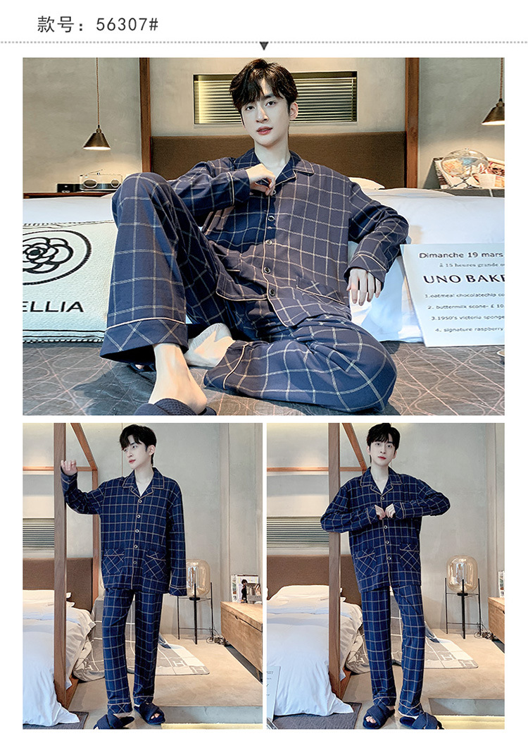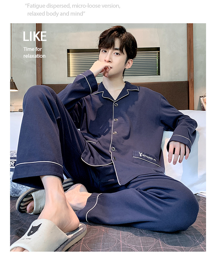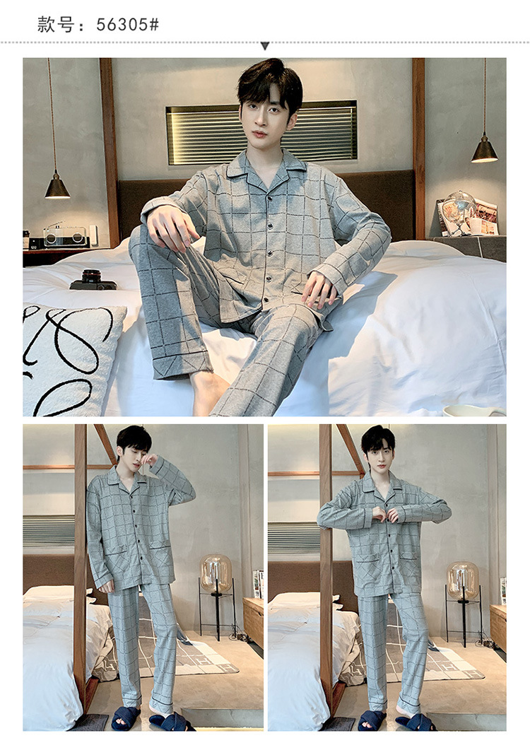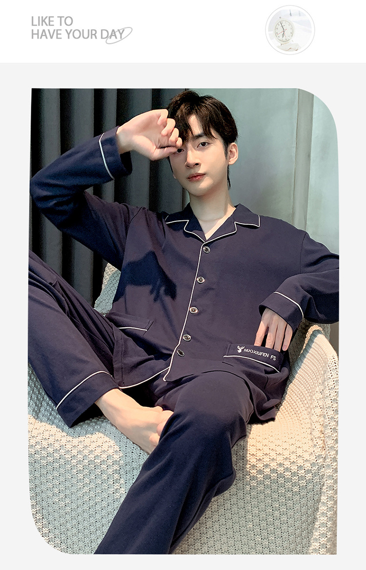 【水洗不易缩水❗️男士纯棉睡衣】睡衣男士双面纯棉长袖开衫宽松大码套装春秋冬家居服男套装男士父亲节礼物新年礼盒年货礼盒