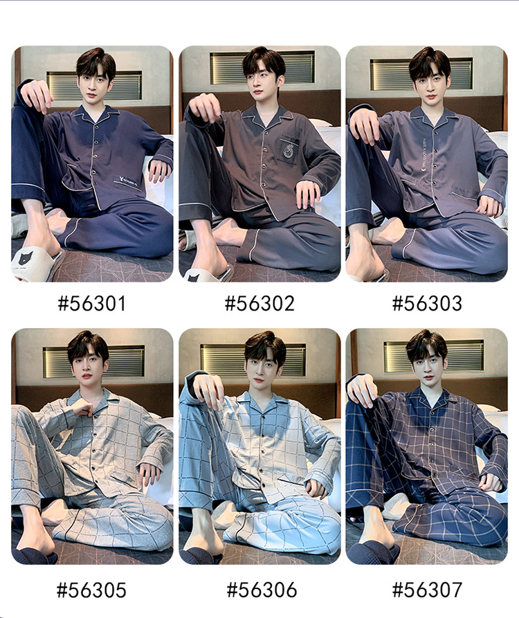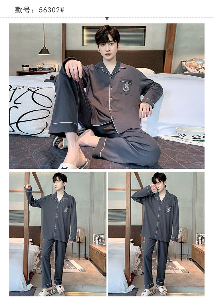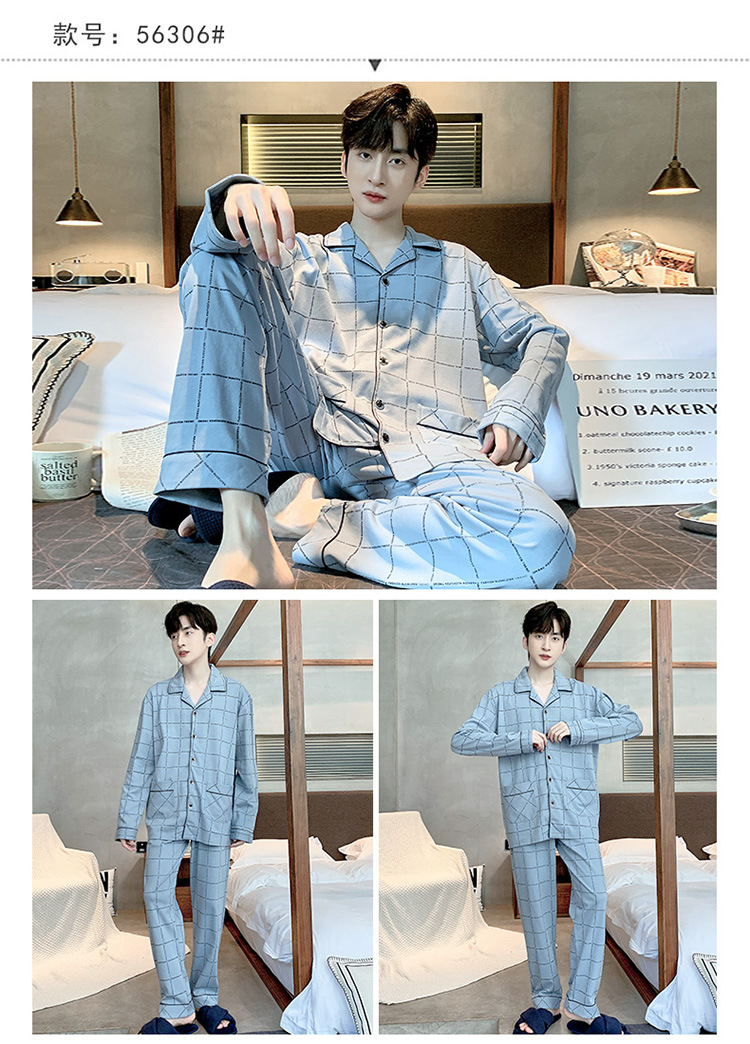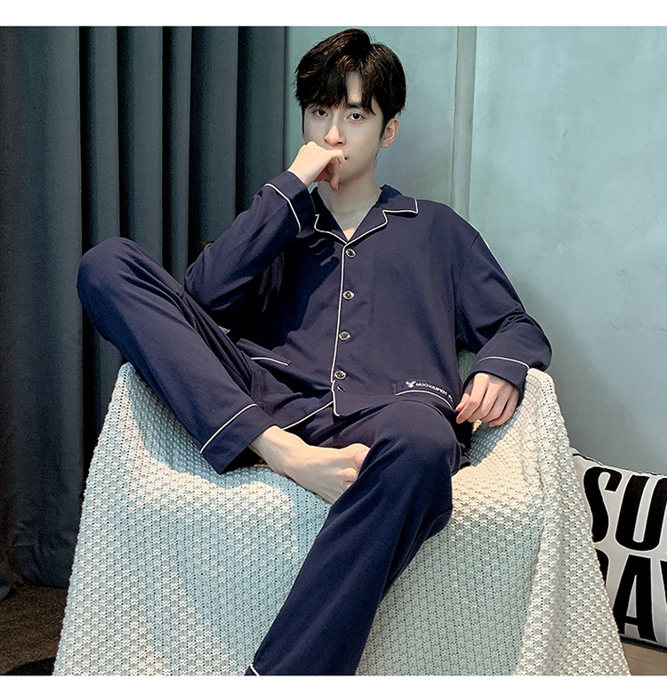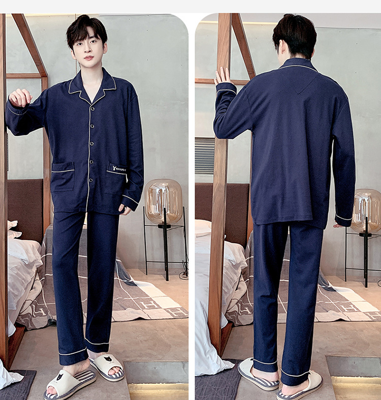 【水洗不易缩水❗️男士纯棉睡衣】睡衣男士双面纯棉长袖开衫宽松大码套装春秋冬家居服男套装男士父亲节礼物新年礼盒年货礼盒