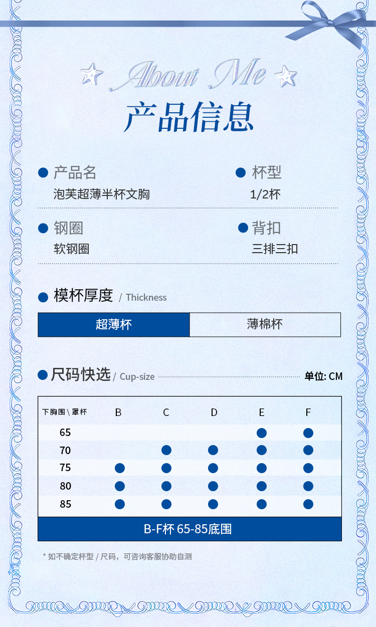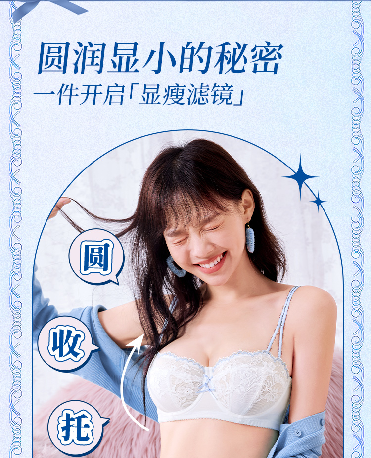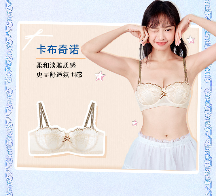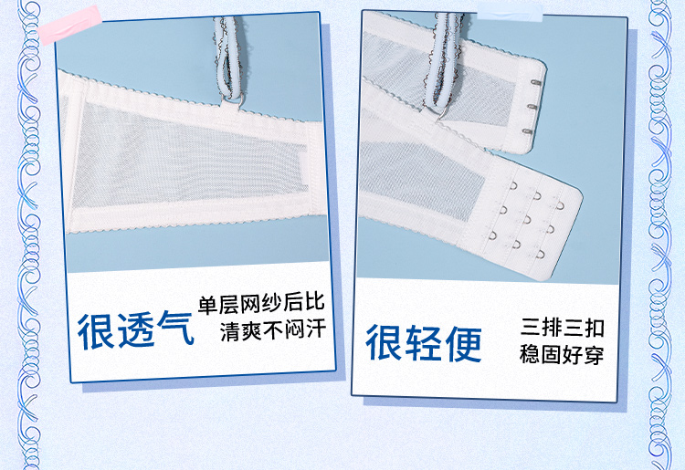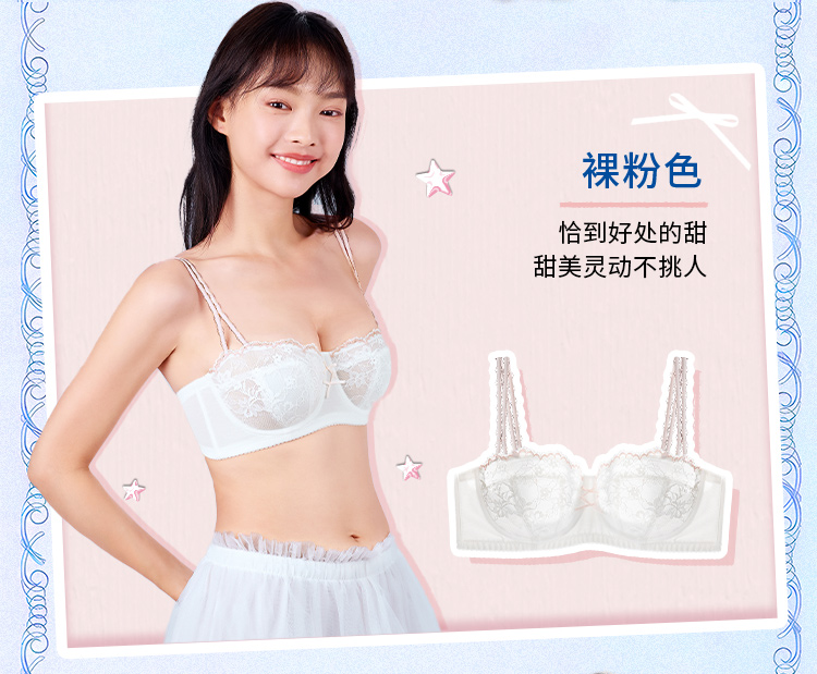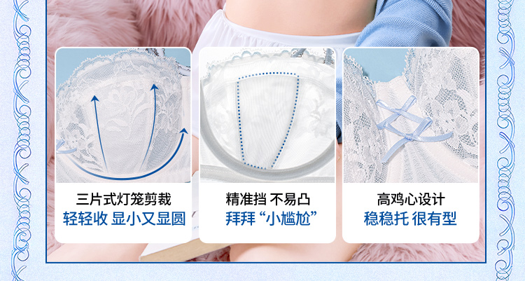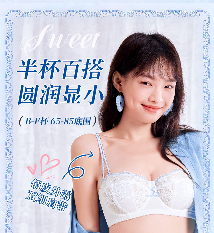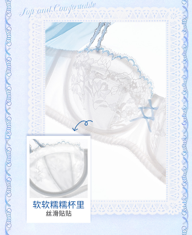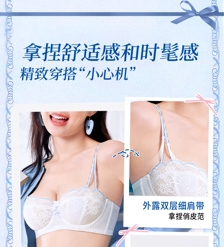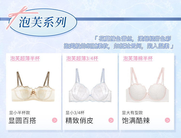 【金卡会员 99/件】[泡芙半杯]大胸显小1/2杯显瘦低领百搭超薄透软钢圈文胸