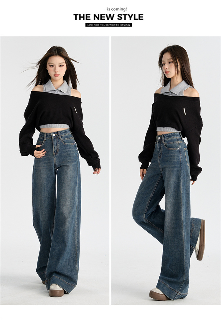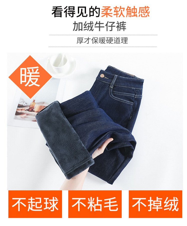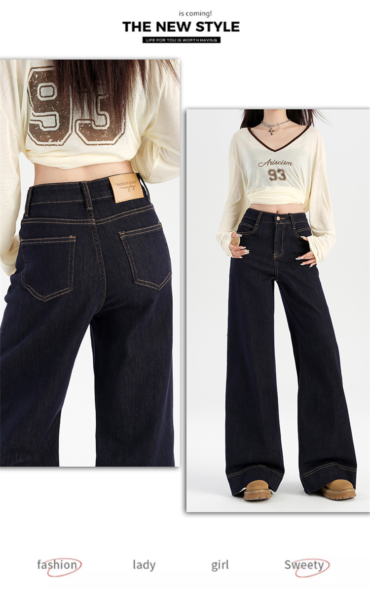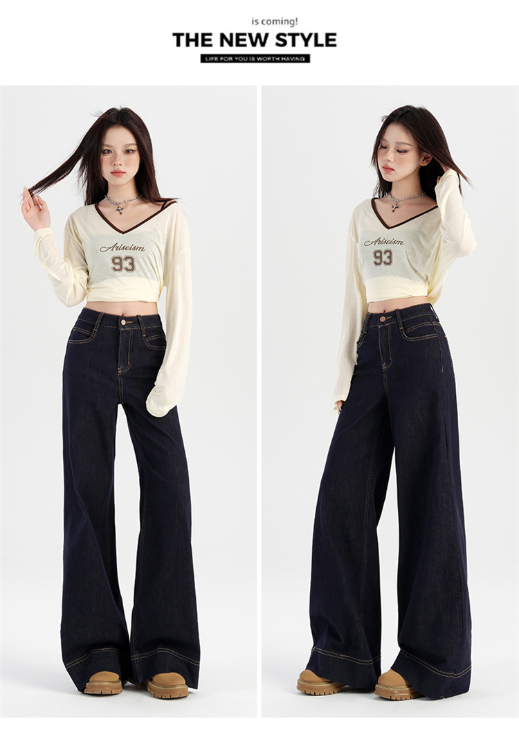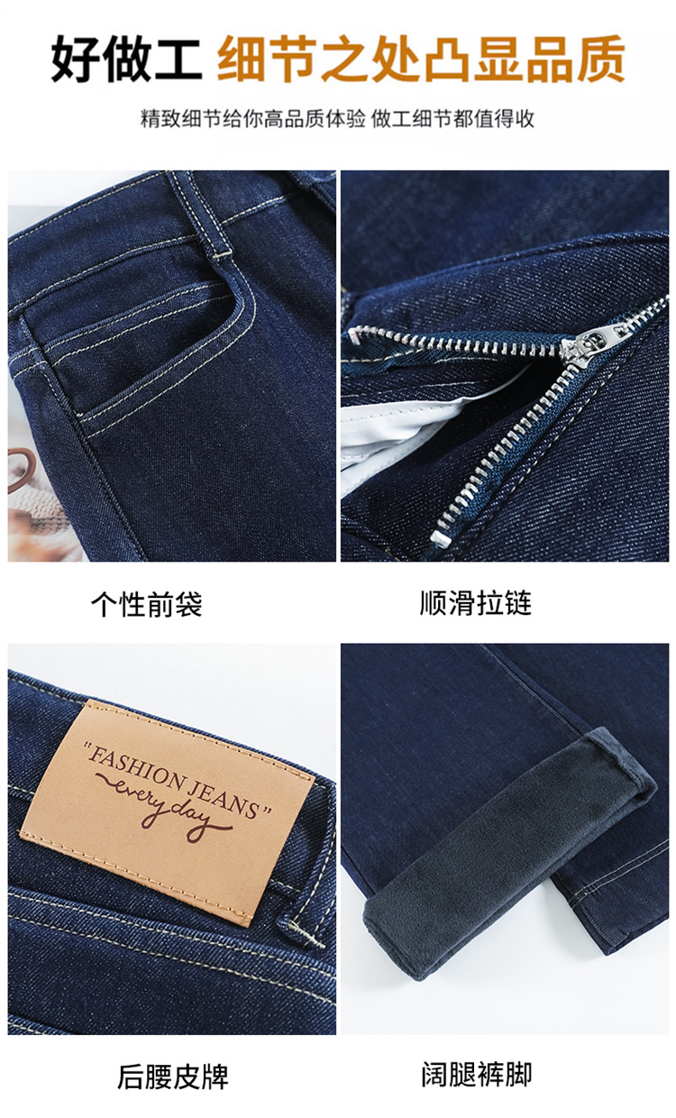 美式丹宁蓝加绒牛仔裤女秋冬新款辣妹设计感弹力拖地宽松大喇叭裤