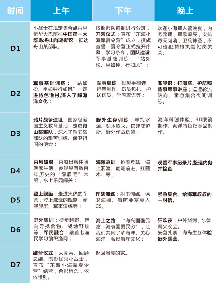 ★以部队为基地,由现役军人参与执行,全面学习海军精神;