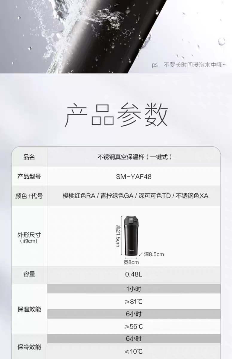 【春上新】10楼 象印 广口不锈钢真空保温杯SM-YAF48 吊牌价659元 活动价329元