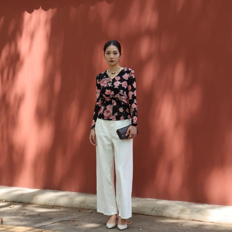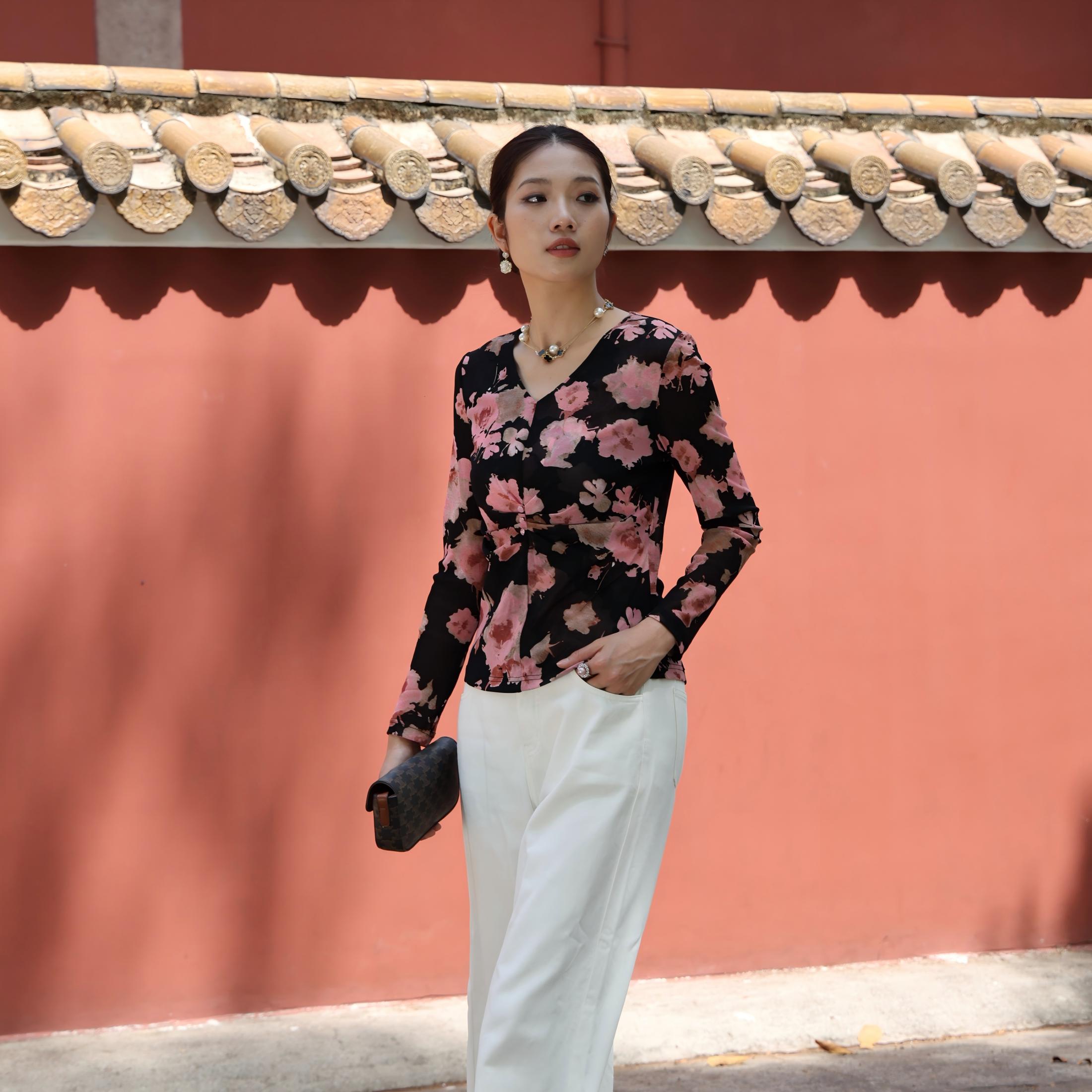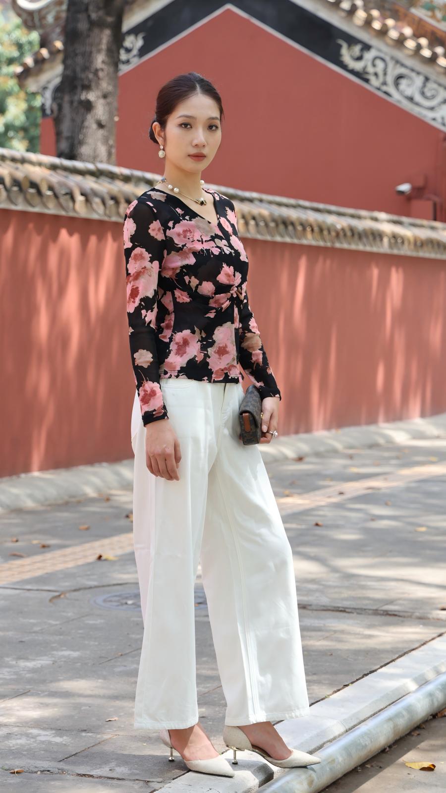 “《花间集》~秋海棠”主题款水红色T恤HJ3T50