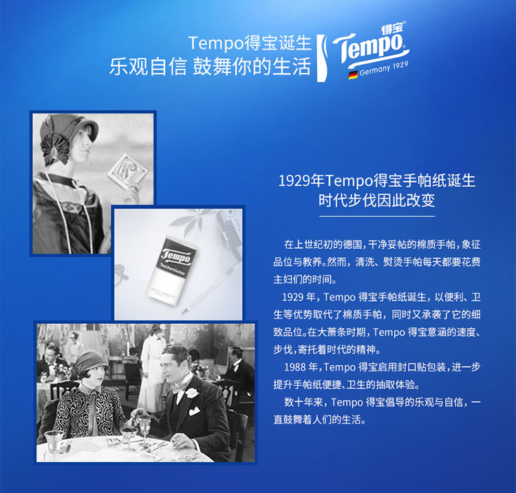 得宝(Tempo) 手帕纸4层12小包 便携式手帕纸(天然无香)