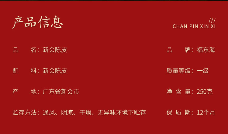福东海 陈皮250克/瓶【春节年货送礼品】珍品玻璃瓶装 大红皮 源产老陈皮