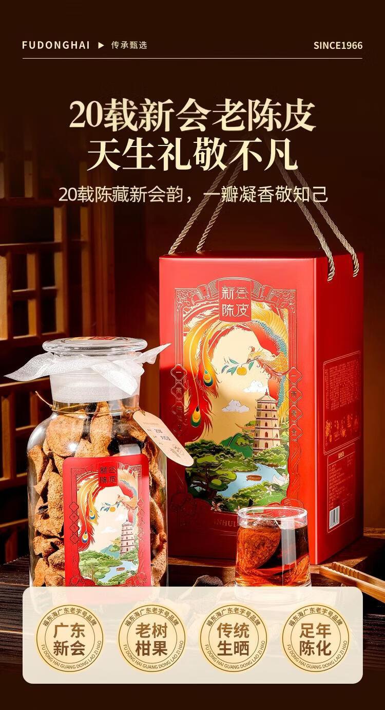 福东海 陈皮250克/瓶【春节年货送礼品】珍品玻璃瓶装 大红皮 广东源产老陈皮【地标认证】陈化养生