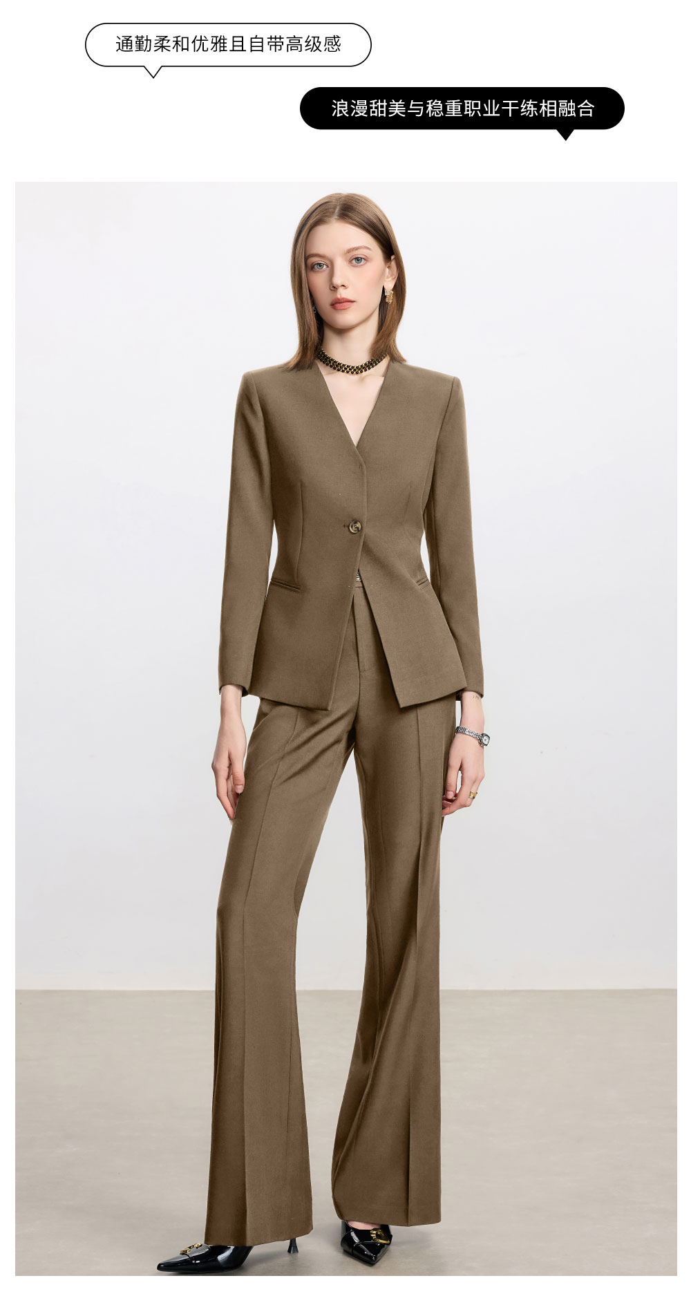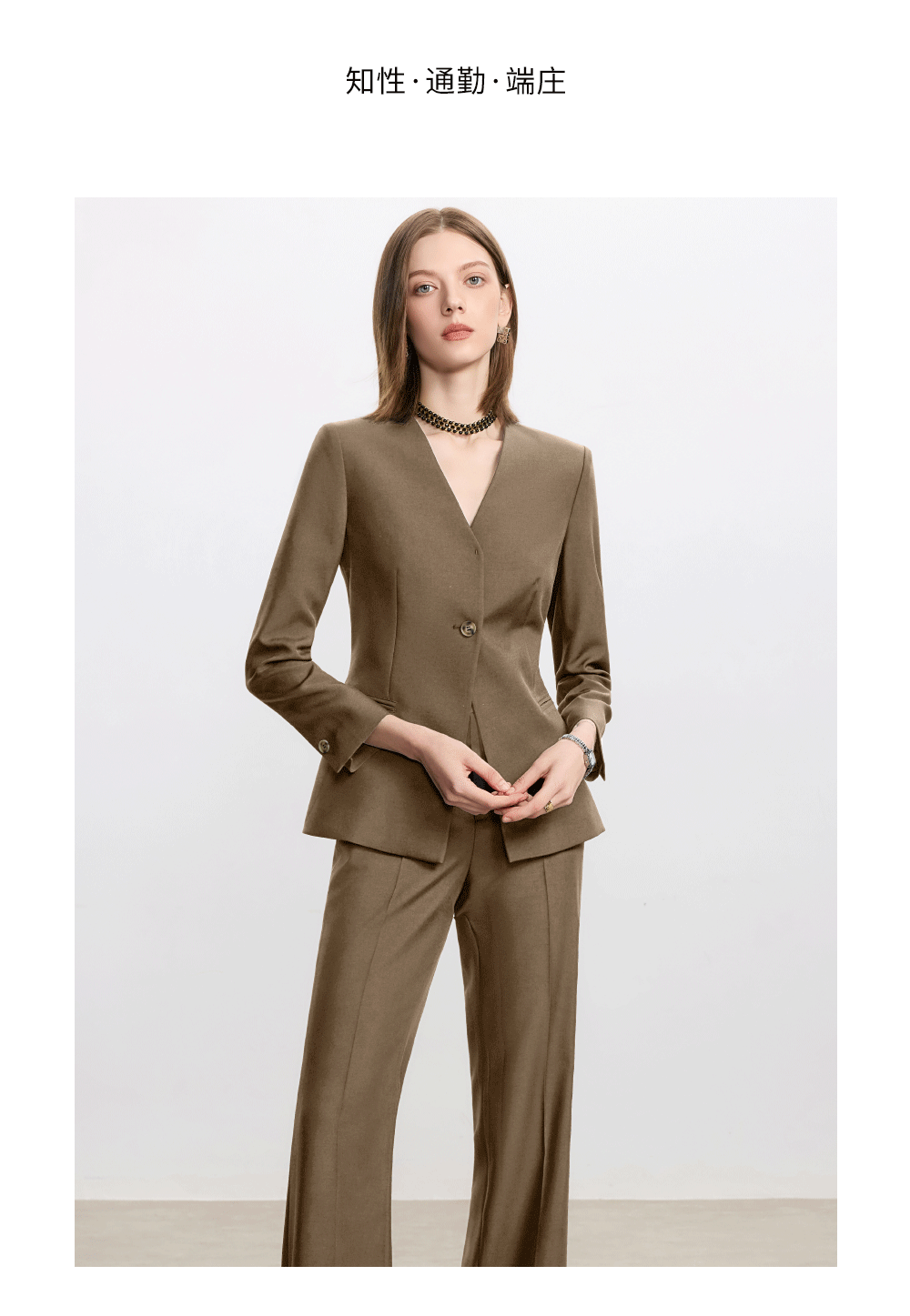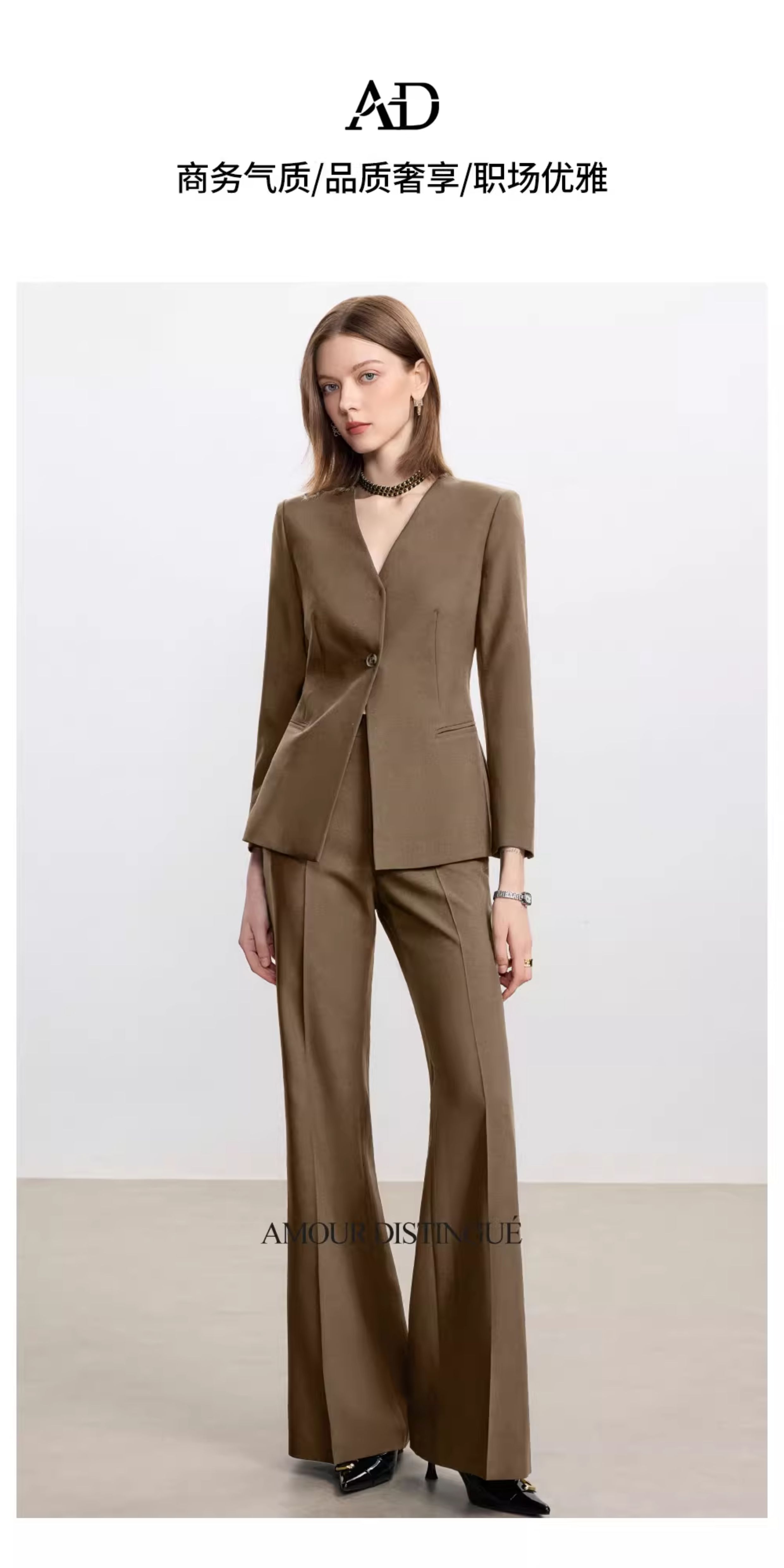 AD卡其色职业套装女秋冬季气质小香风百搭西装阔腿裤高级感正装