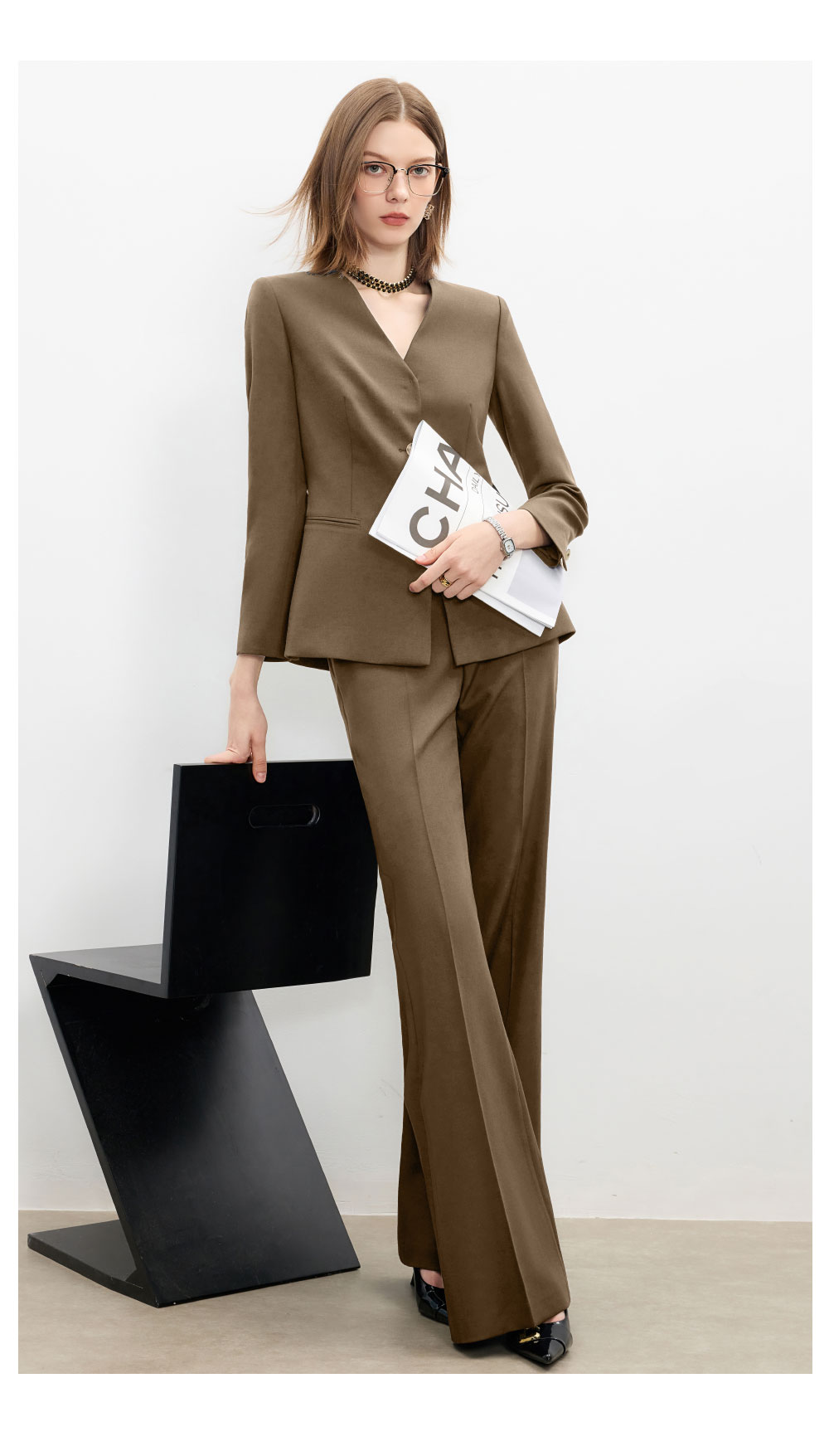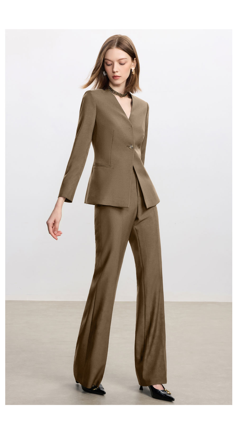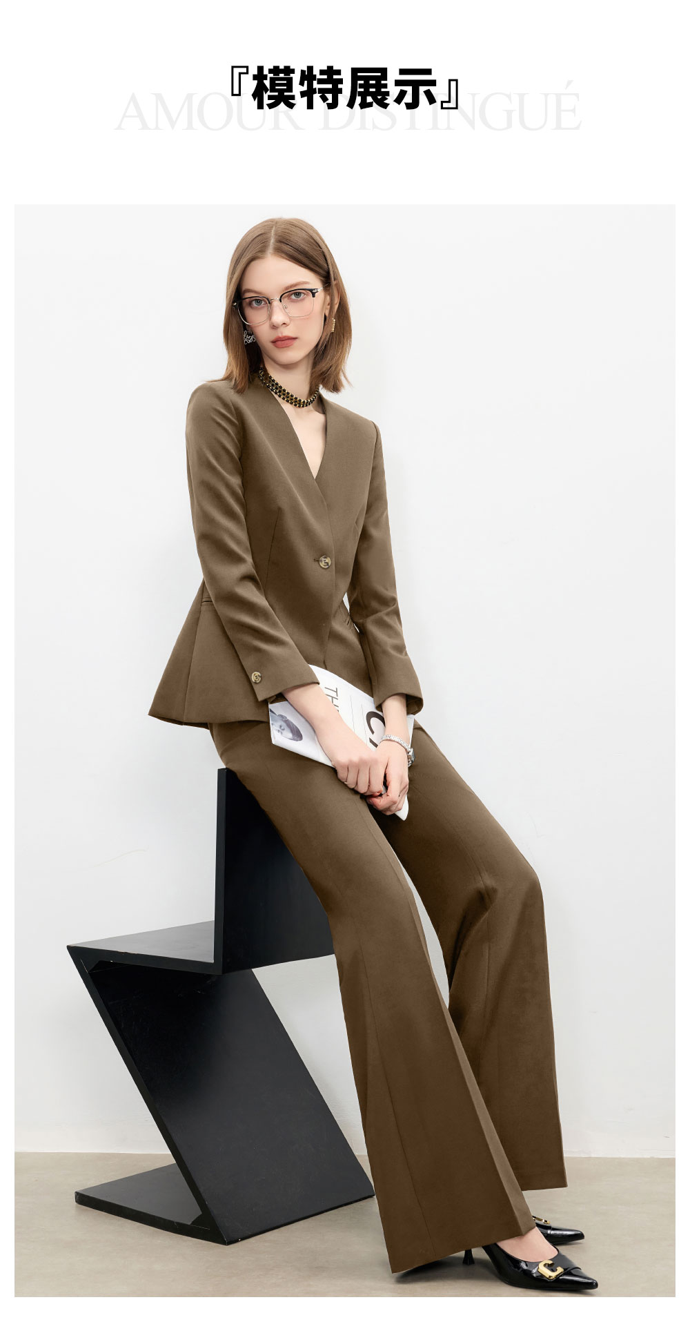 AD卡其色职业套装女秋冬季气质小香风百搭西装阔腿裤高级感正装