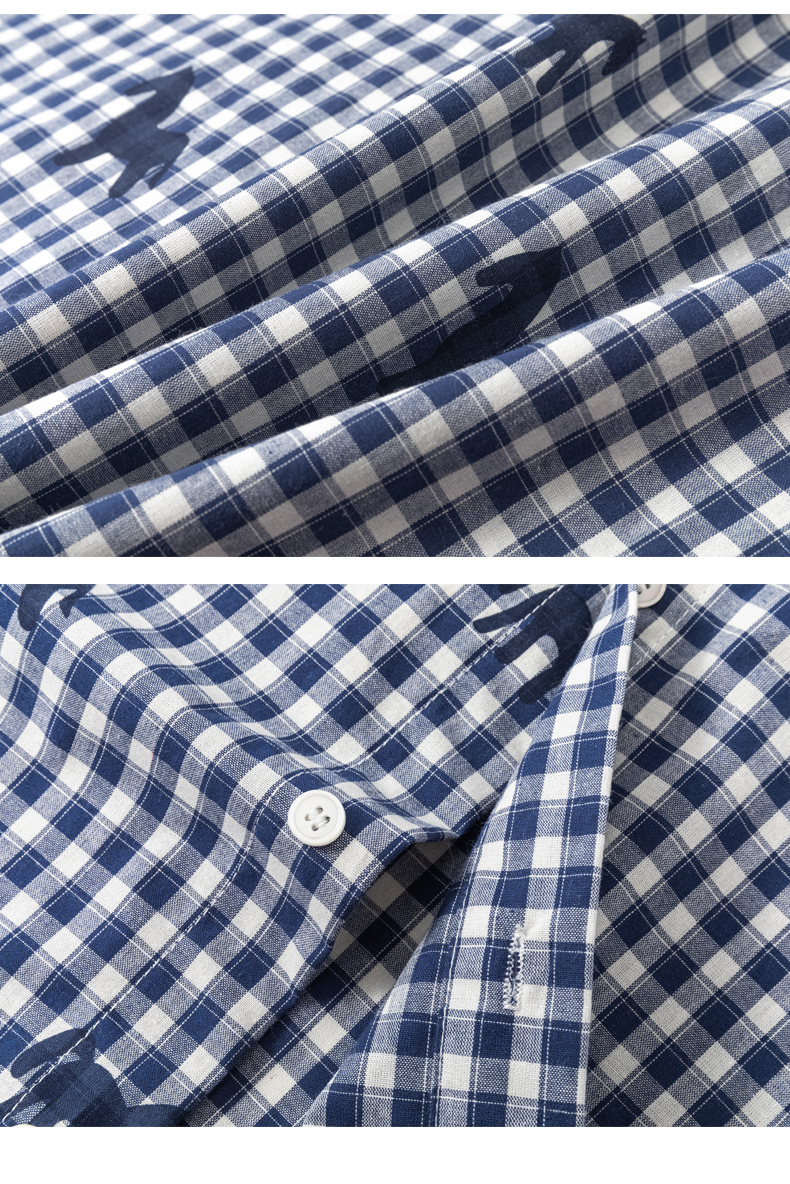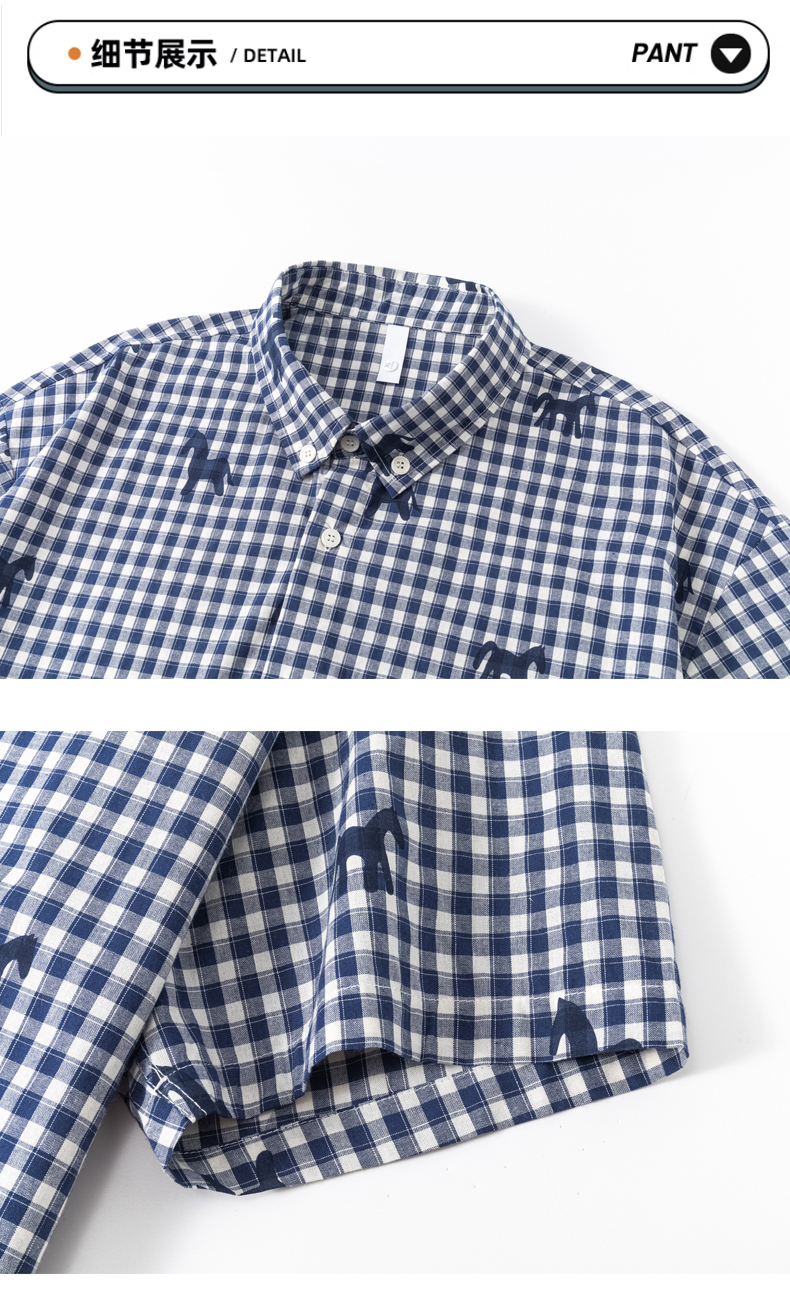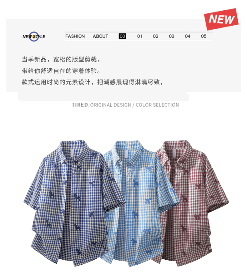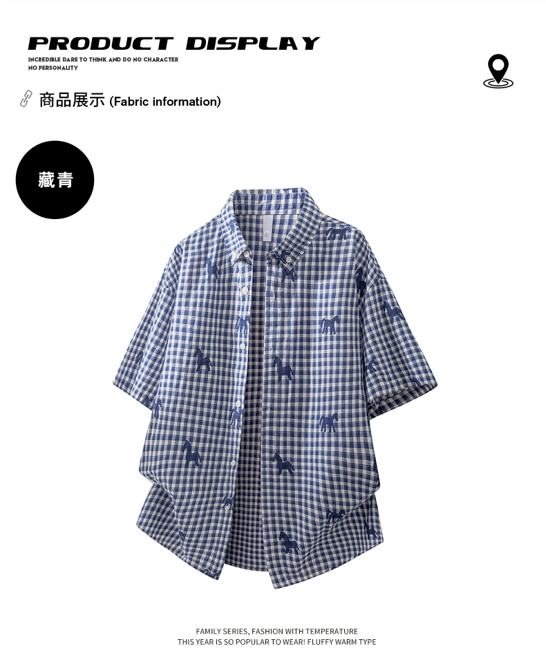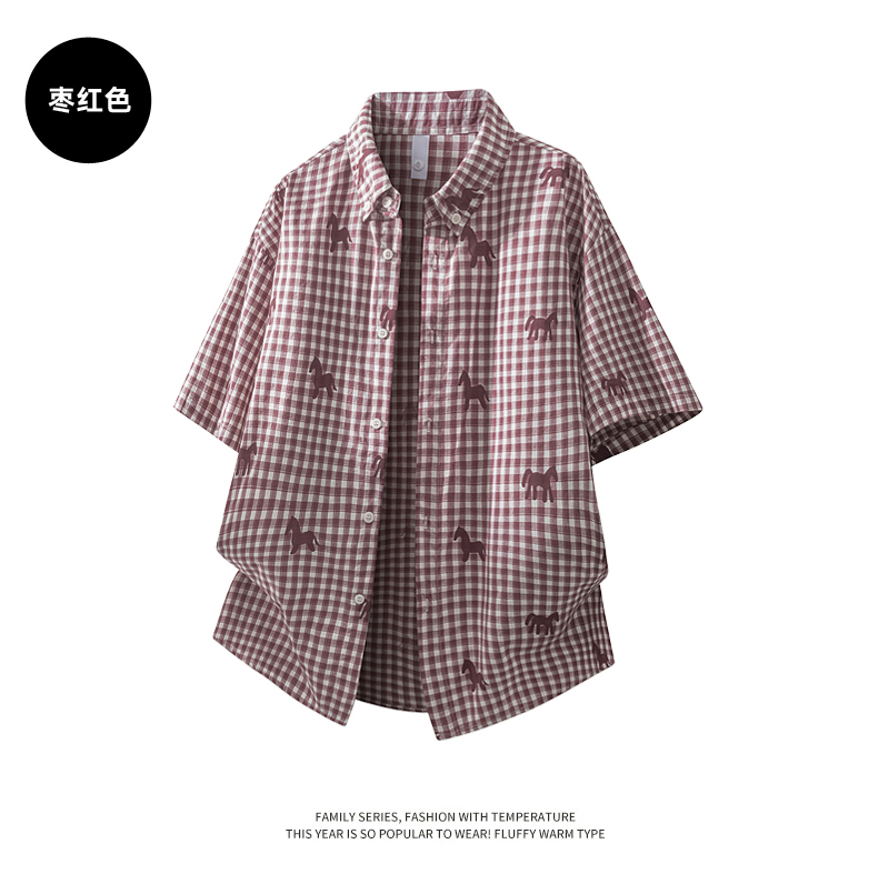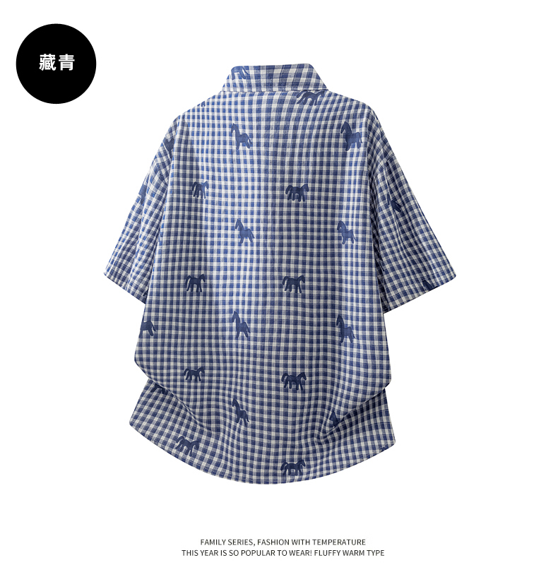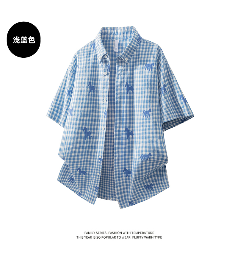 Schenvega情侣小马格子印花短袖衬衣 减龄穿搭 拿捏职场 松弛度假 男女同款 ELXM99-CY669