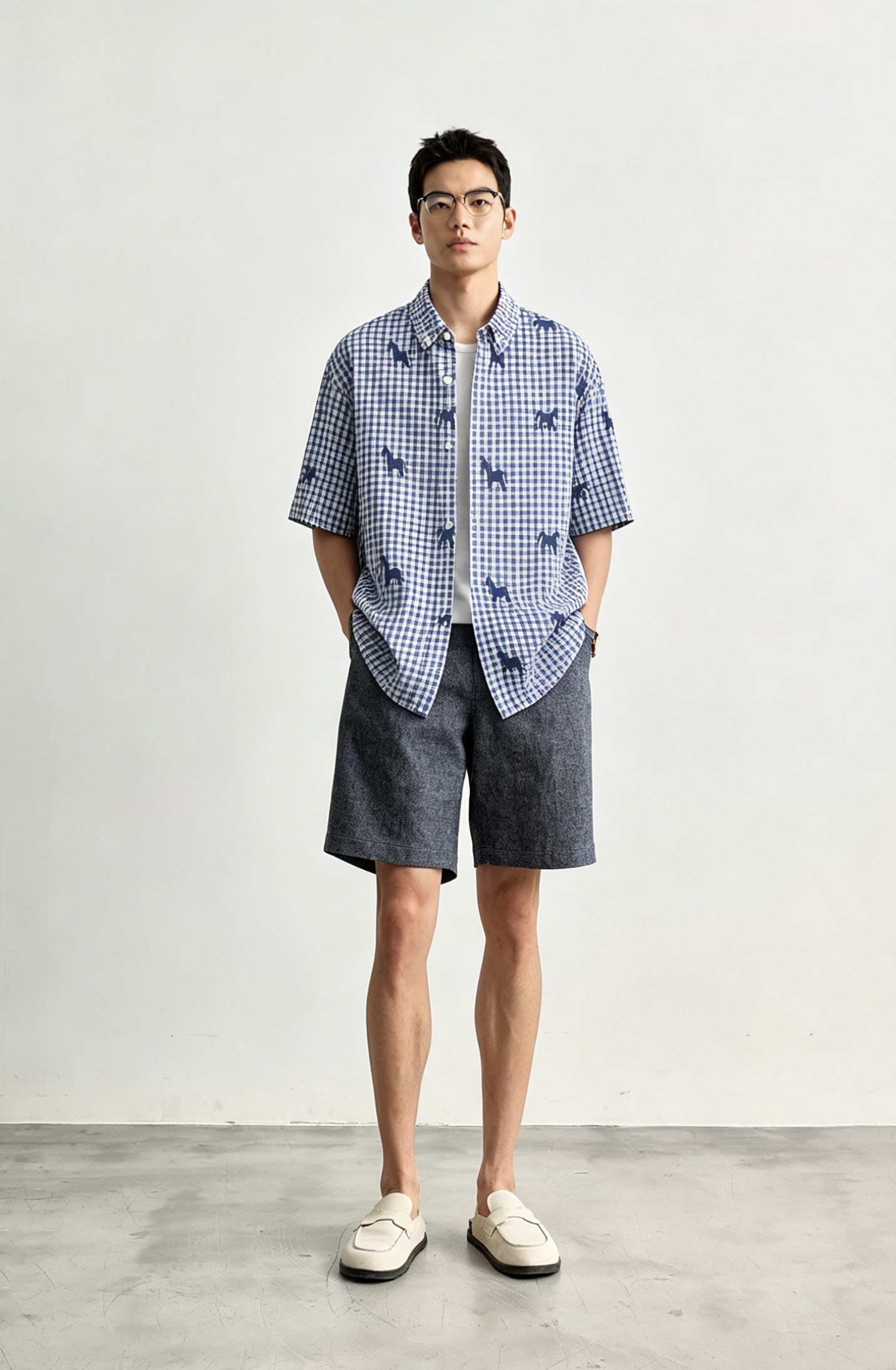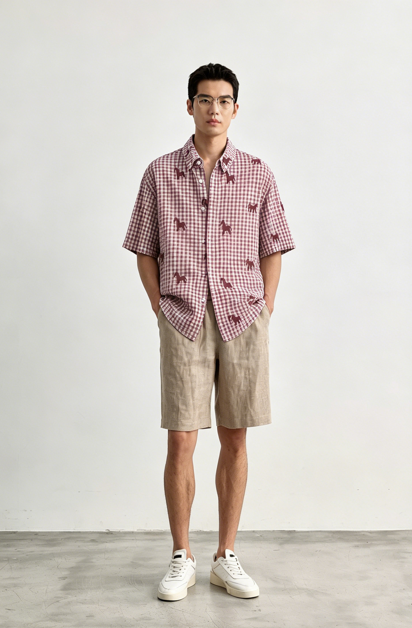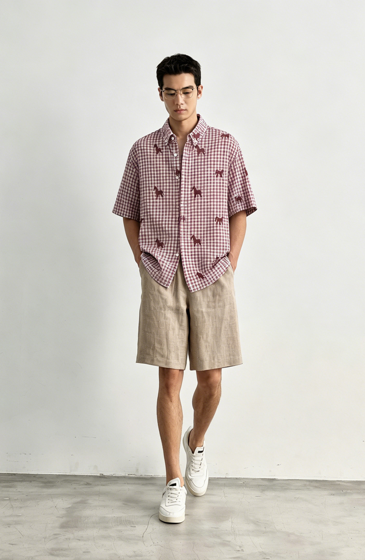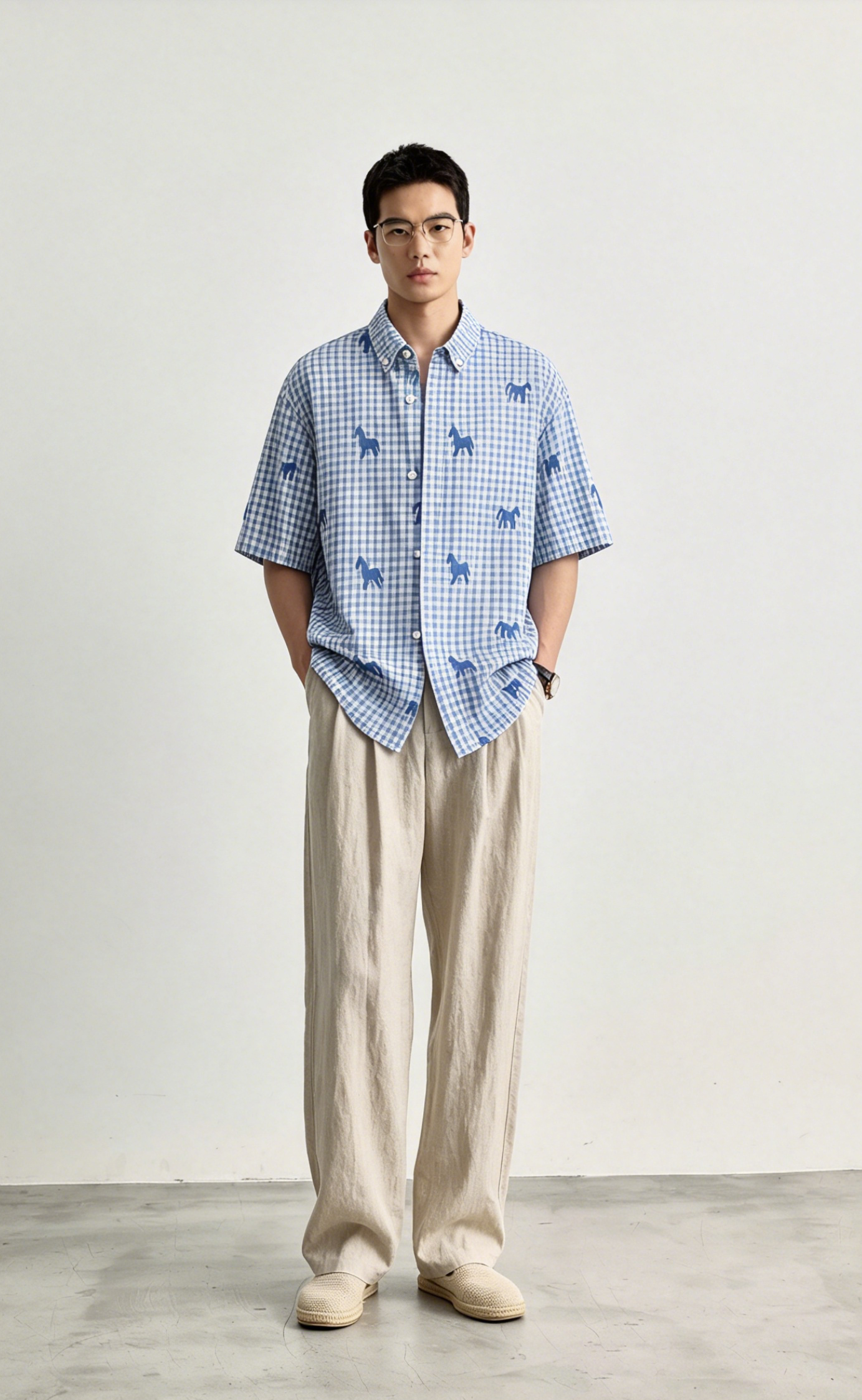 Schenvega情侣小马格子印花短袖衬衣 减龄穿搭 拿捏职场 松弛度假 男女同款 ELXM99-CY669