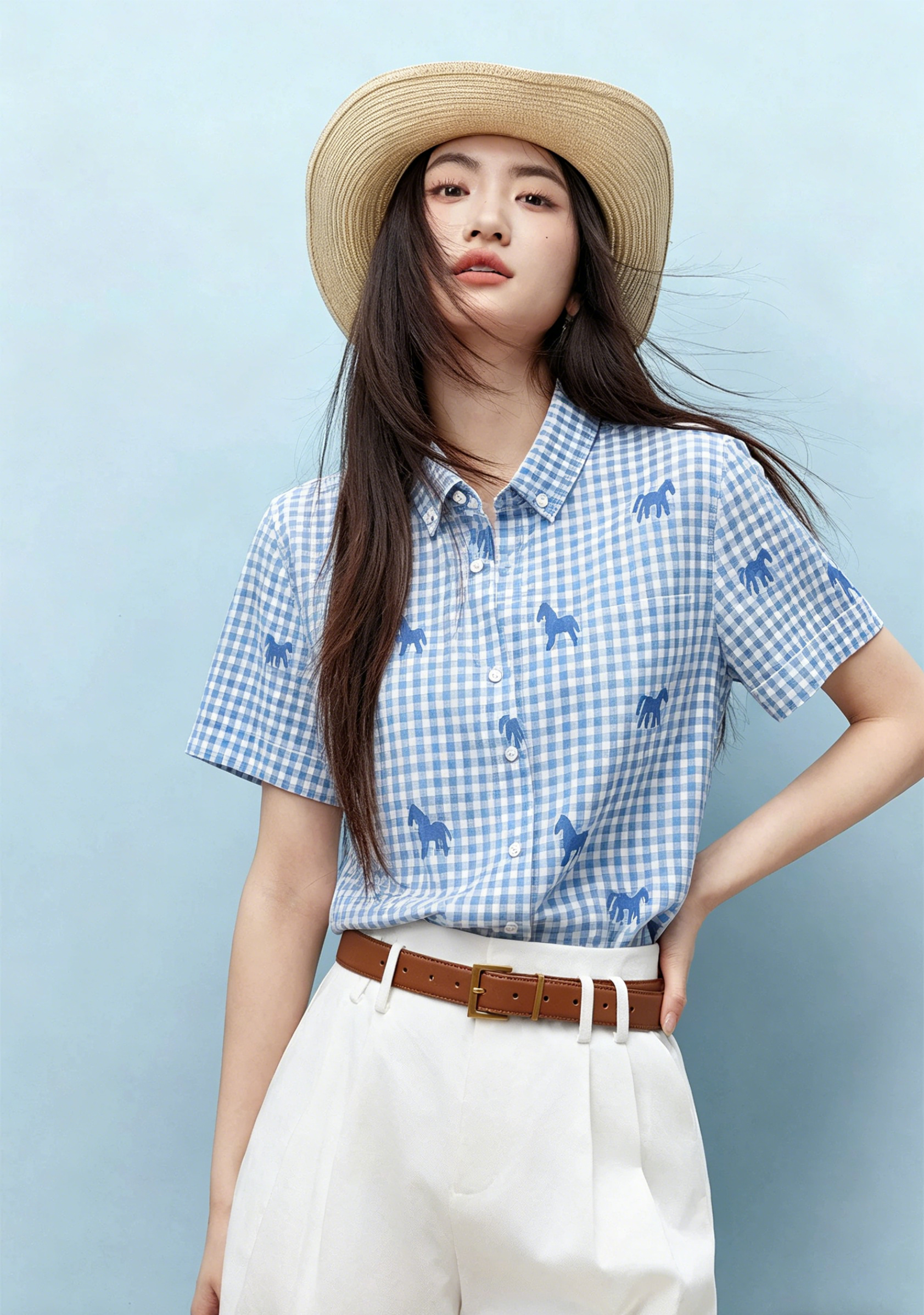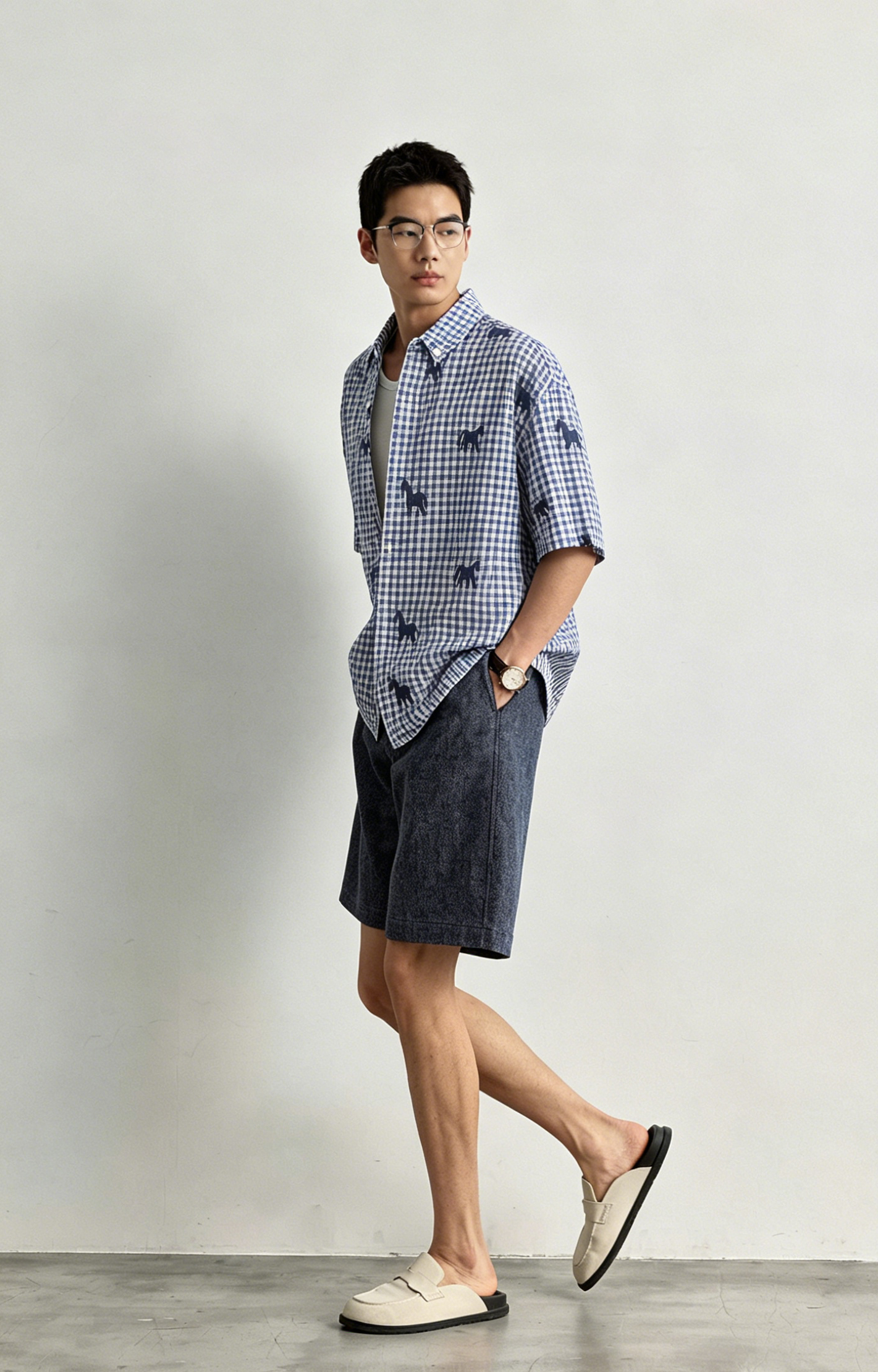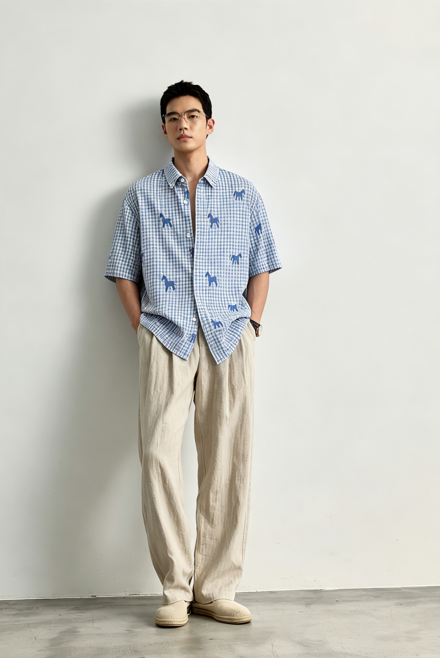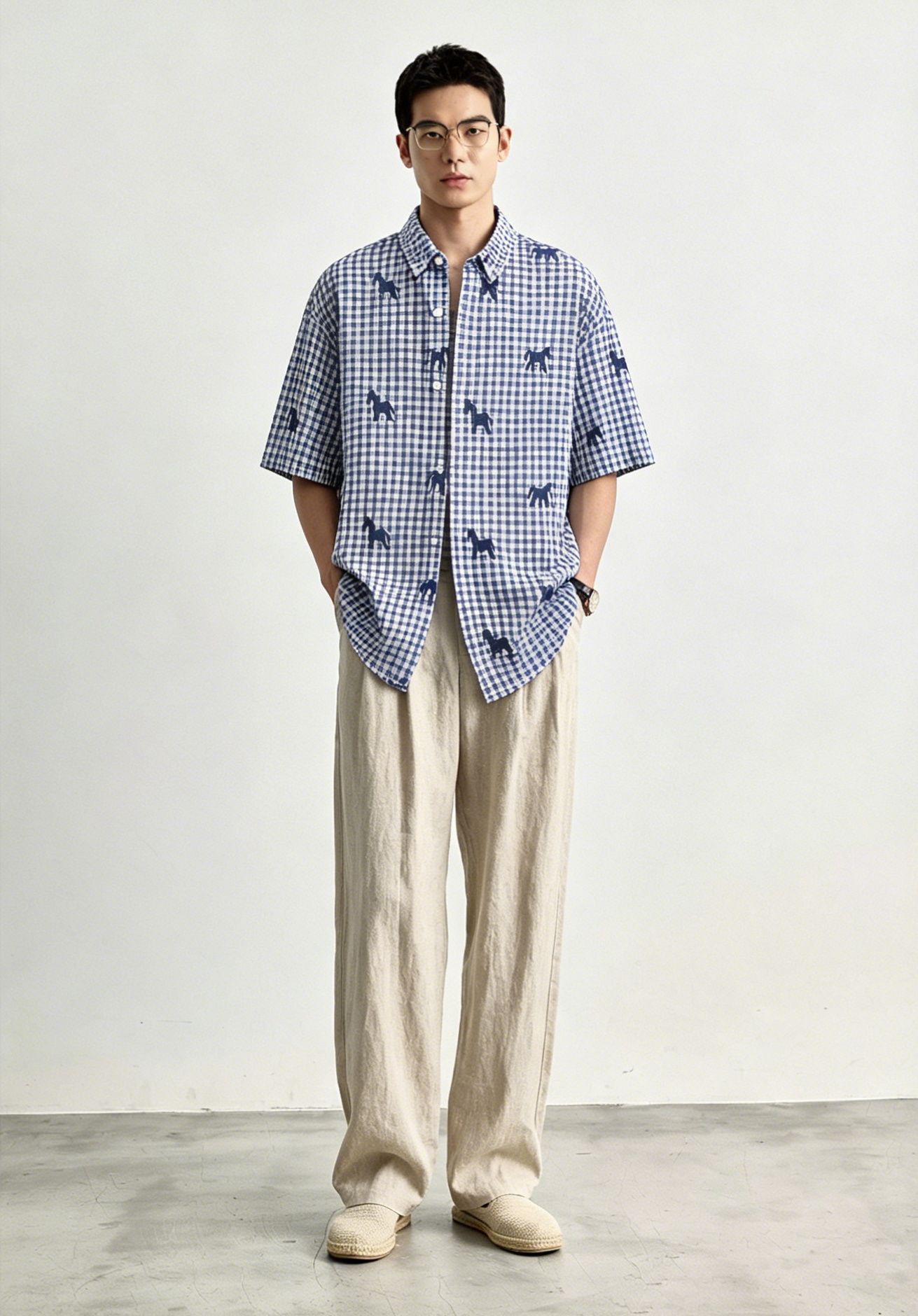 Schenvega情侣小马格子印花短袖衬衣 减龄穿搭 拿捏职场 松弛度假 男女同款 ELXM99-CY669