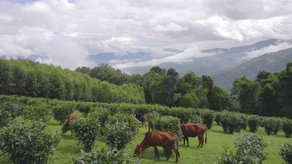 行食野草山泉临沧的深山里,邦东大雪山、大南美草山上,晨光打在漫山的狗尾草上,透过闪闪的金光,没有一般的草原的一望无际,但却有起伏的芳草萋萋……。不分季节,大山里的草场依然绿意盎然,在蓝天白云下,牛儿在此自由自在地享受着大自然的馈赠。看着眼前的如画景致,心中自有一种回归自然的惬意舒心。