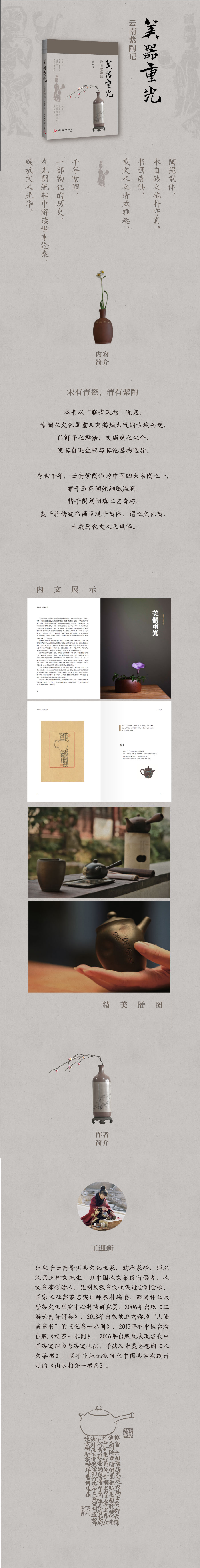 本书从“临安风物”说起,紫陶在文化厚重又充满烟火气的古城兴起,信仰予之鲜活,文庙赋之生命,使其自诞生就与其他器物迥异。