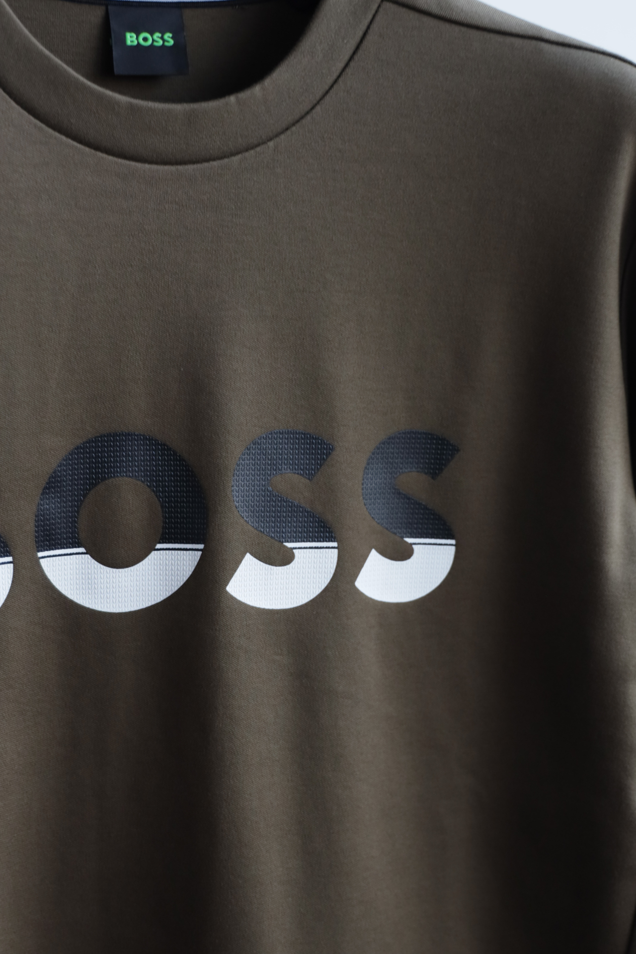 双面平纹丝光水洗,手感细腻,胸口立体凸纹手感字母印花