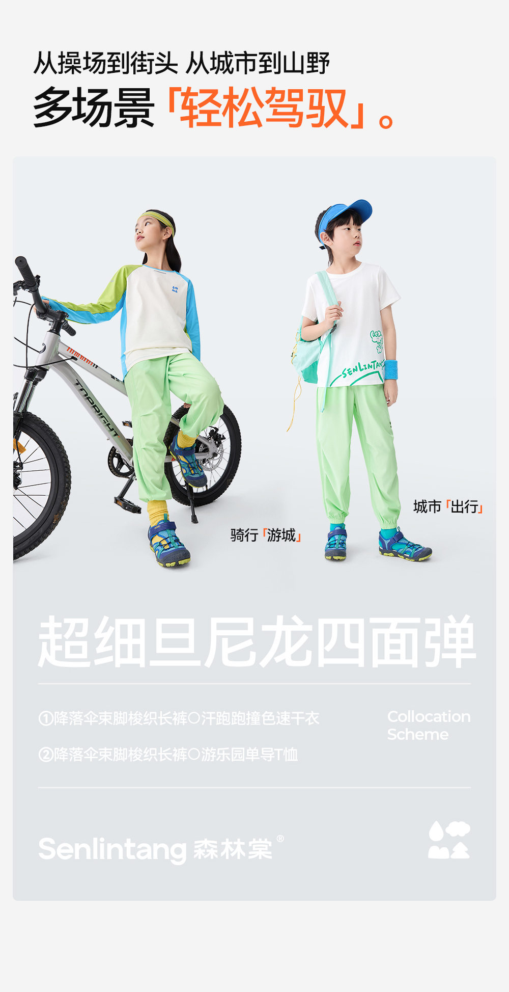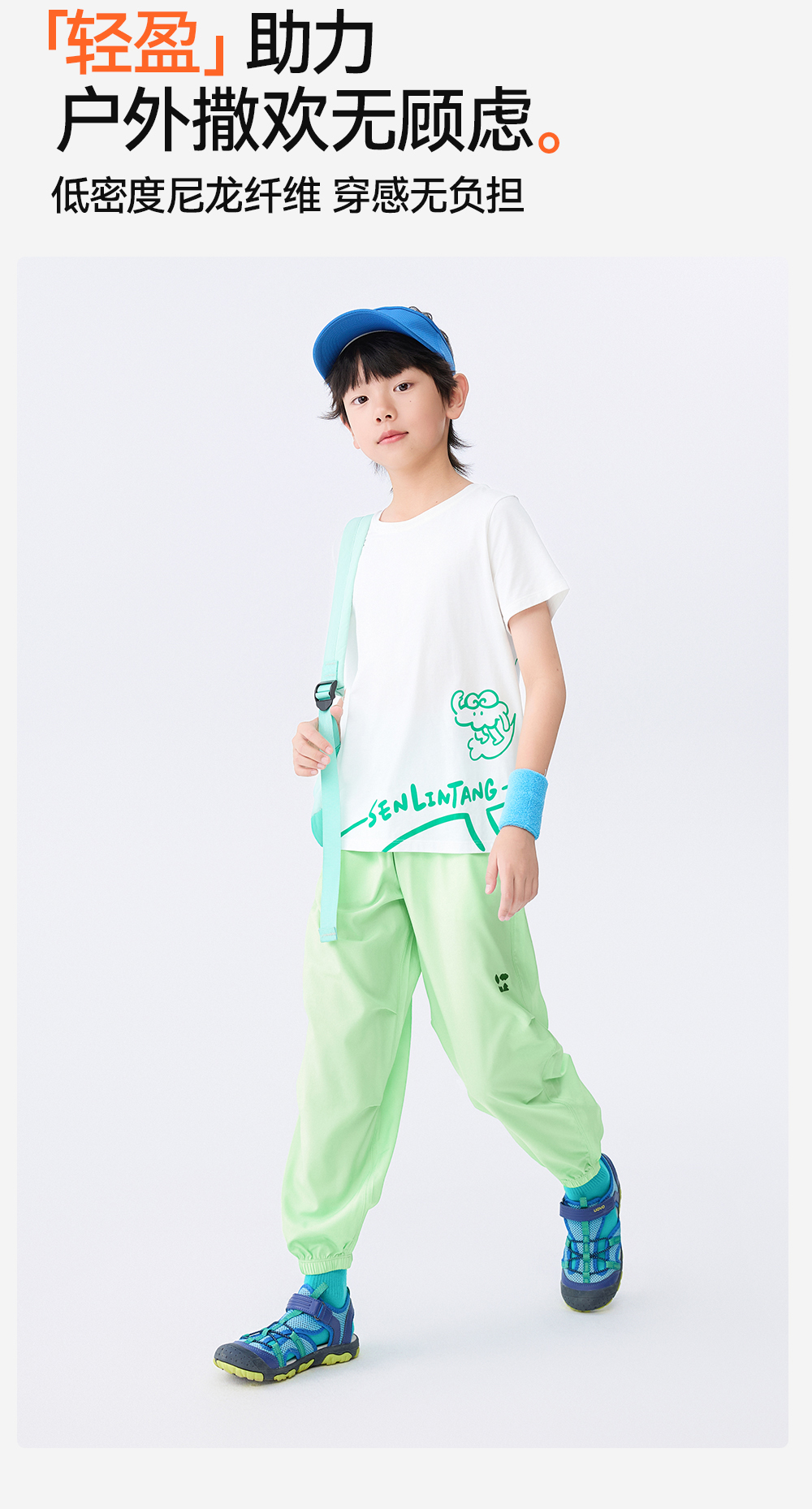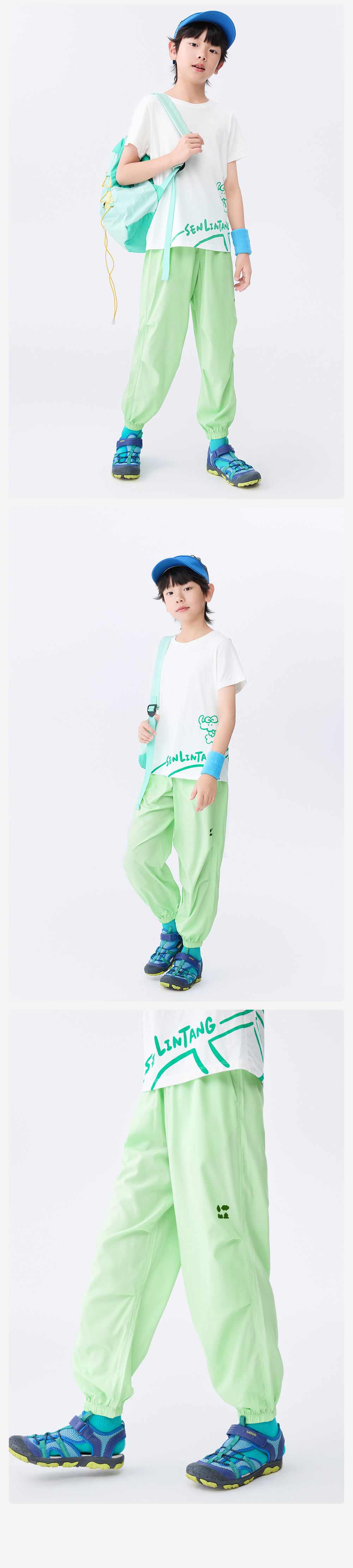 [屁侠推荐]降落伞束脚梭织长裤森林棠25夏款儿童吸湿速干超轻裤户外运动裤41082522