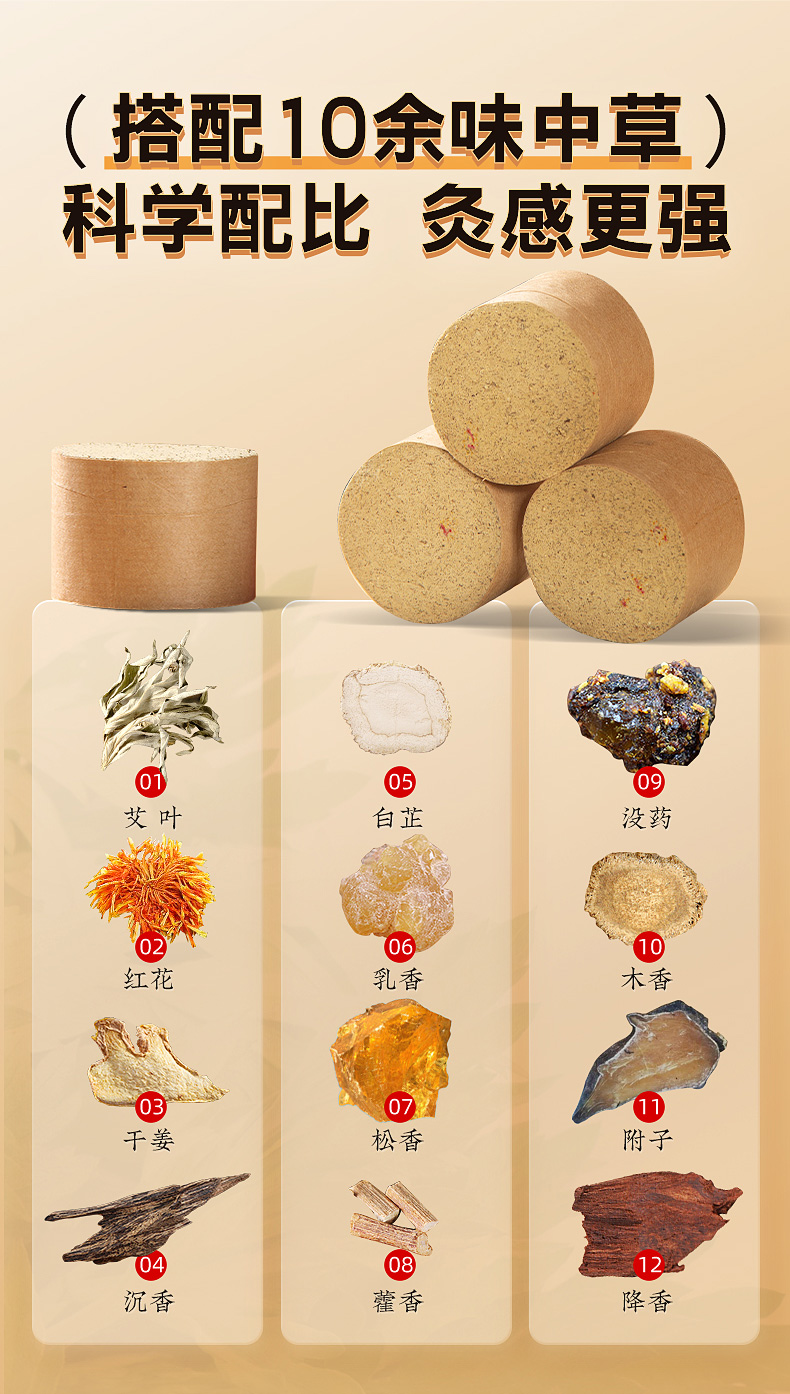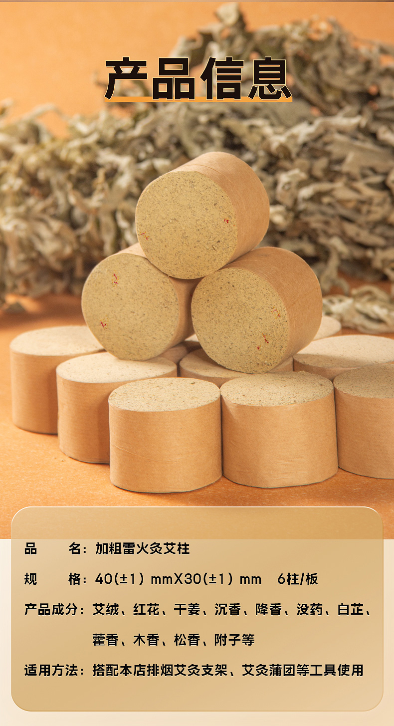 加粗加药雷火灸艾柱-直径4cm*高3cm一板6粒