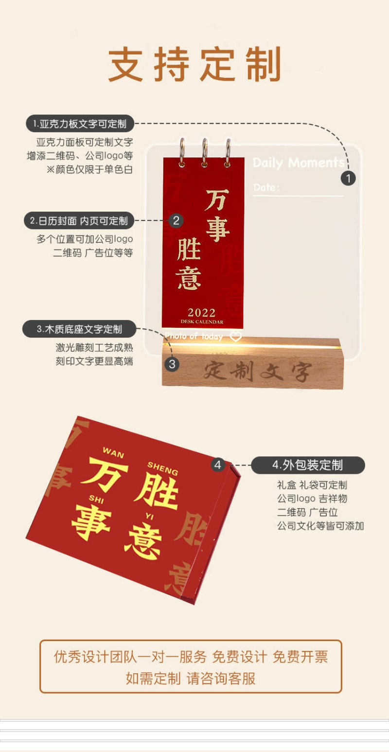 亚克力记事板台历diy虎年2022年礼盒发光可擦留言板创意小日历ins