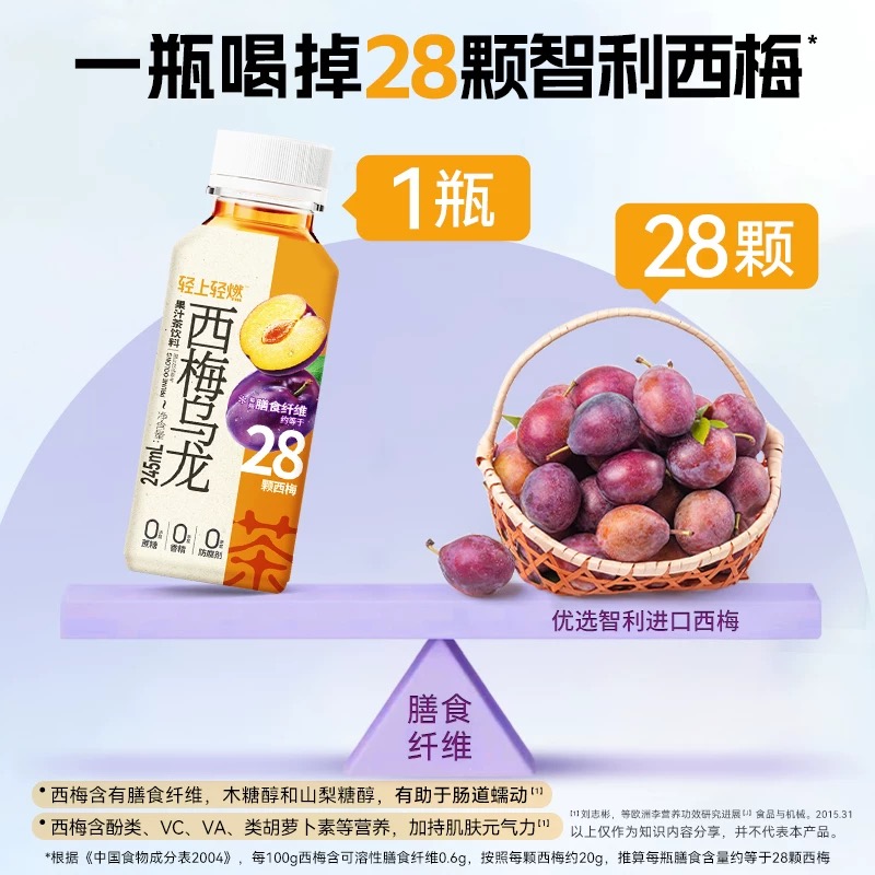轻上轻燃 西梅乌龙果汁茶饮料 245ml/瓶