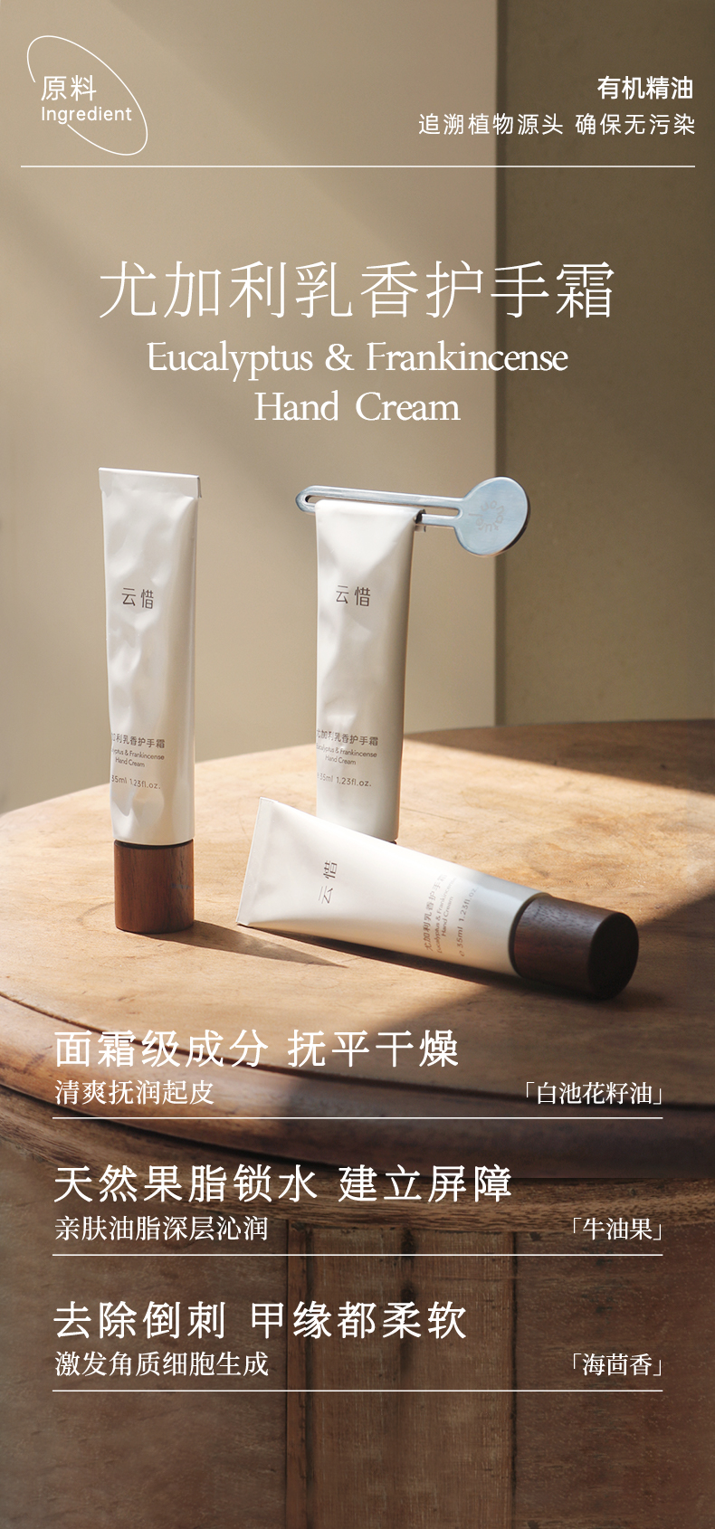 【清新叶香滋润手部】云惜尤加利乳香护手霜 无香精