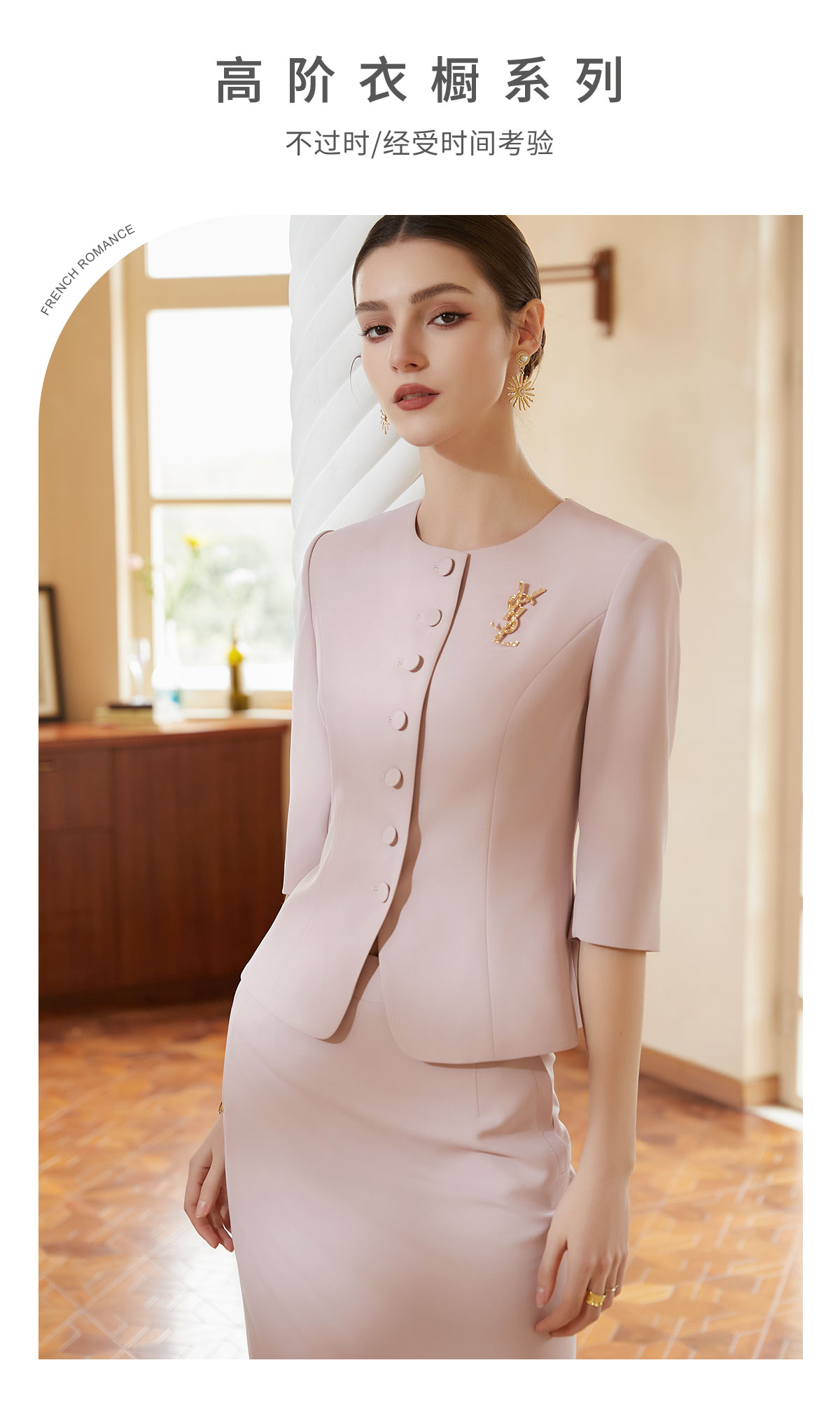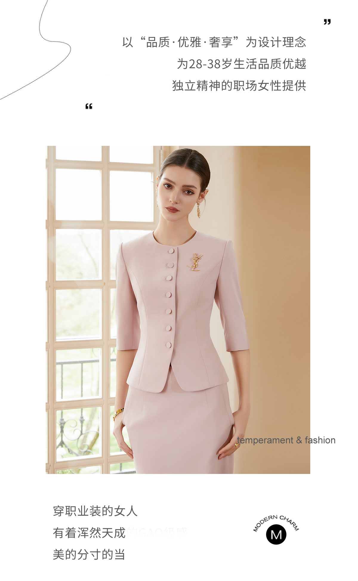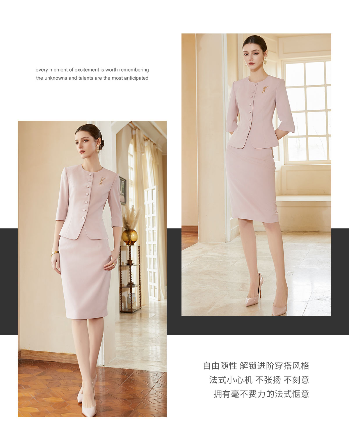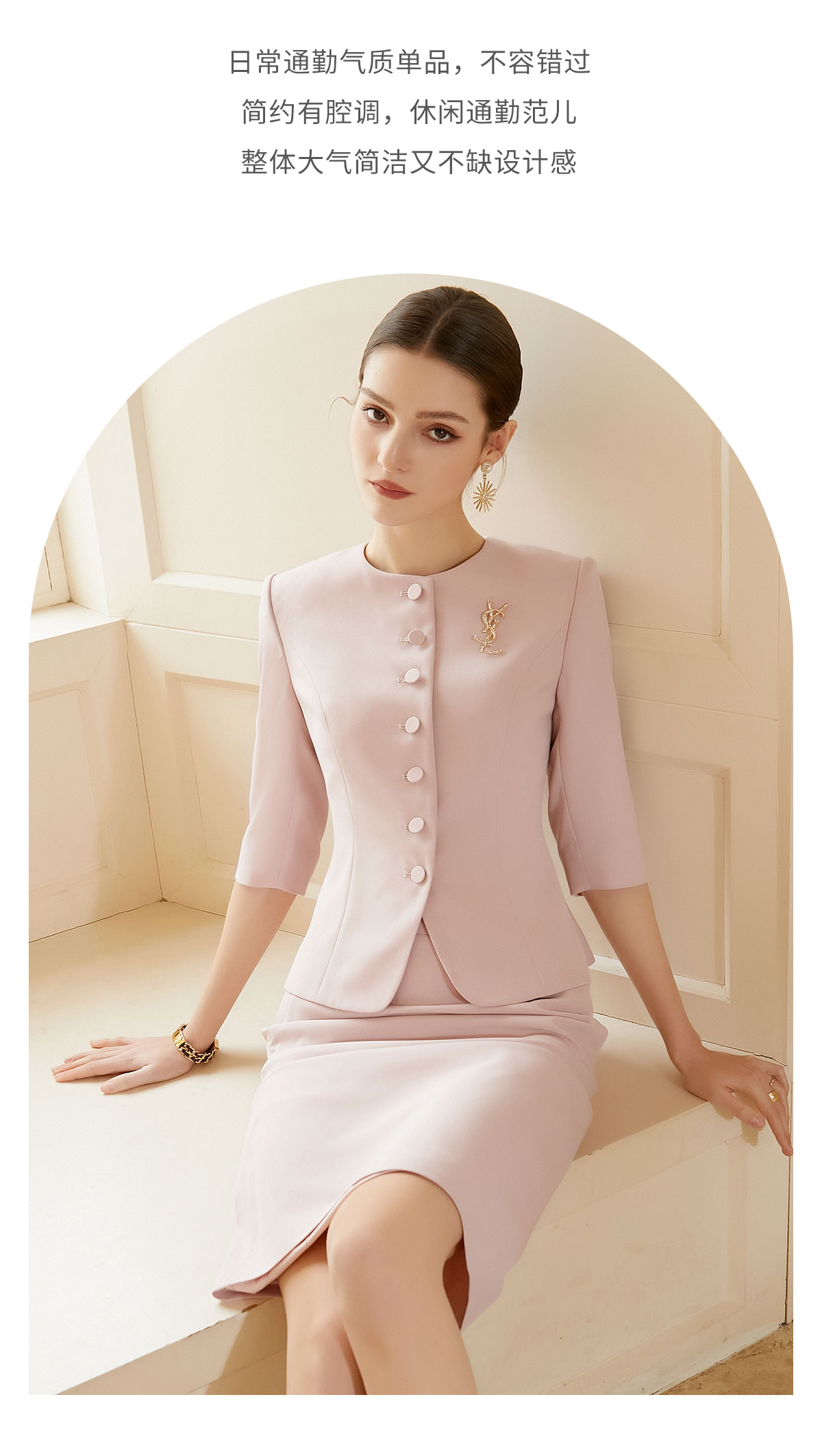 艾尚臣粉色西装套装裙女名媛高级感七分袖工作服职业气质两件套春