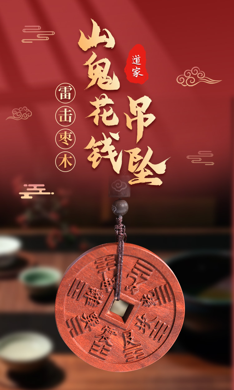 雷击枣木,山鬼花钱法牌,精雕工艺