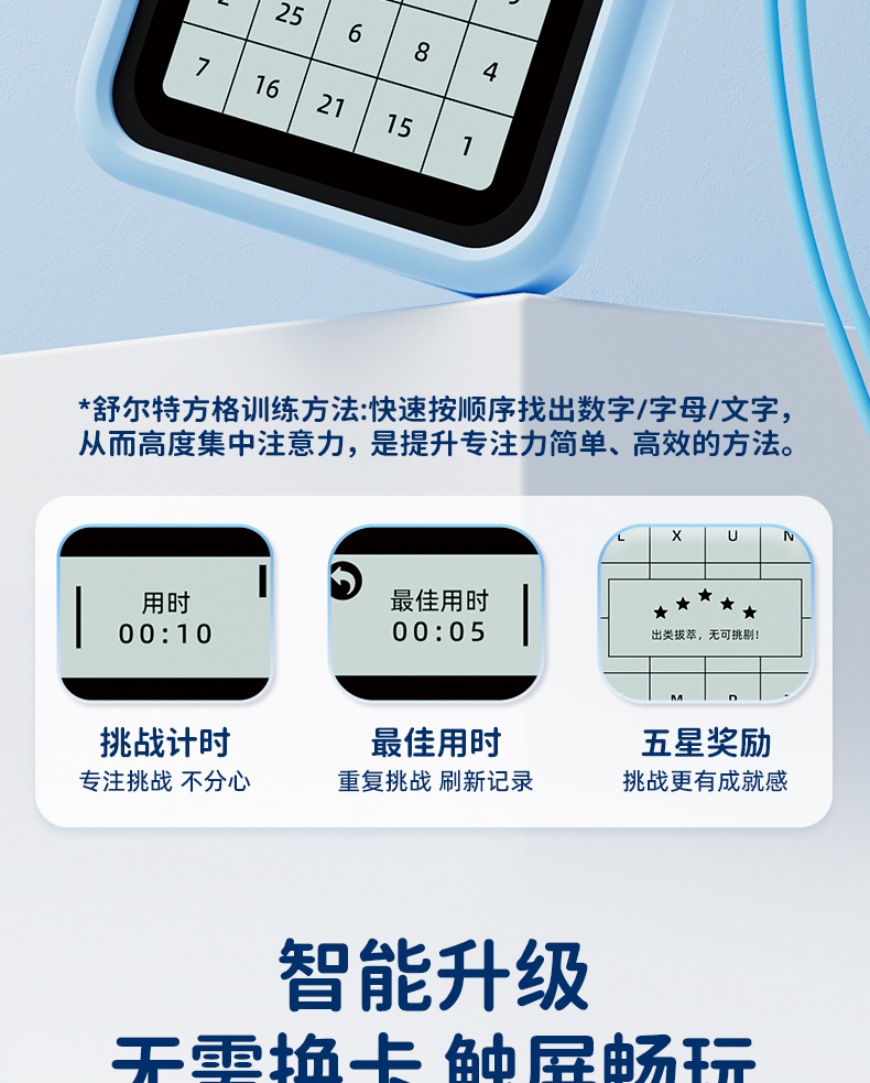 【商品名称】天文舒尔特专注力训练机 【发货时效】48h内发货 【物流说明】西藏、新疆不发货 【售后说明】1.非质量问题退换不影响二次销售的扣除8元(签收超48小时不支持);2.质量、缺件问题请签收后48小时内反馈,过期无法为您处理喔;3.快递送货外观有严重破损的请拒收;4.随机赠品不在售后范围内。 特别提醒:物流异常问题,比如无信息更新、退件等,请于发货后1个月内反馈,超过1个月不做处理!