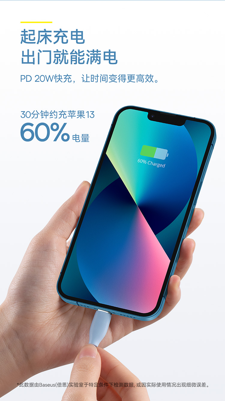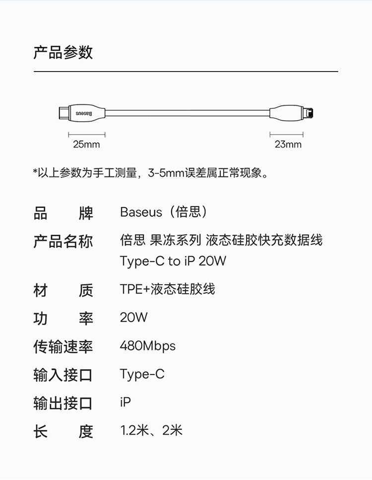 倍思 果冻系列 液态硅胶快充数据线Type-C to iP 20W