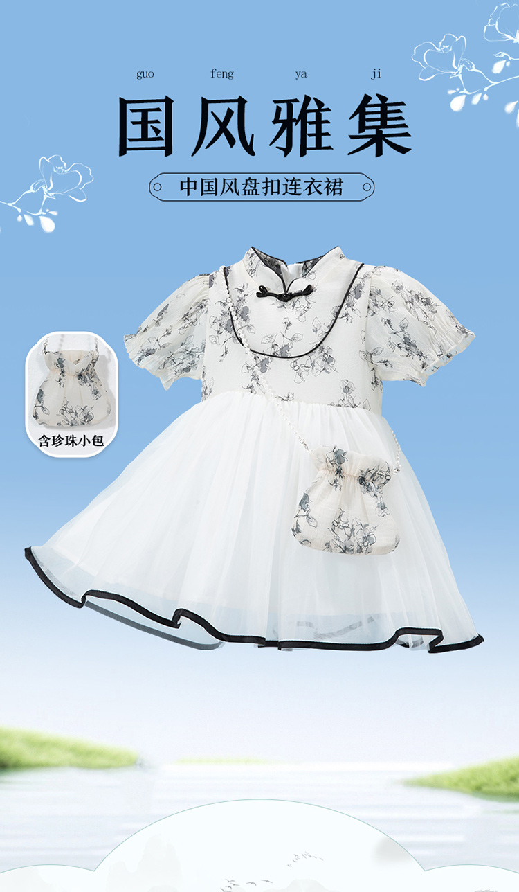 贝贝怡女童连衣裙夏装2024新款儿童国风新中式旗袍宝宝公主裙汉服