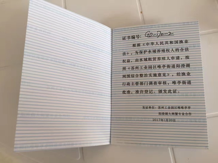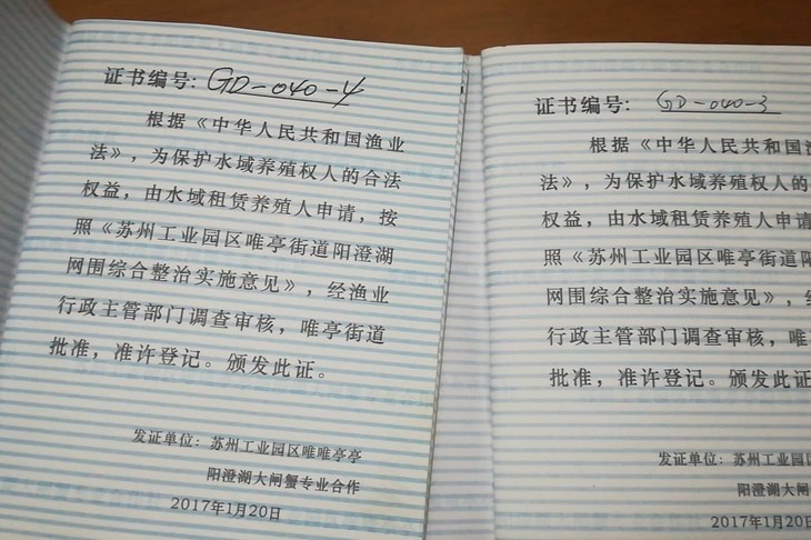 << 👈左滑可查看更多证件内容 ,阳澄湖水域承包证>>