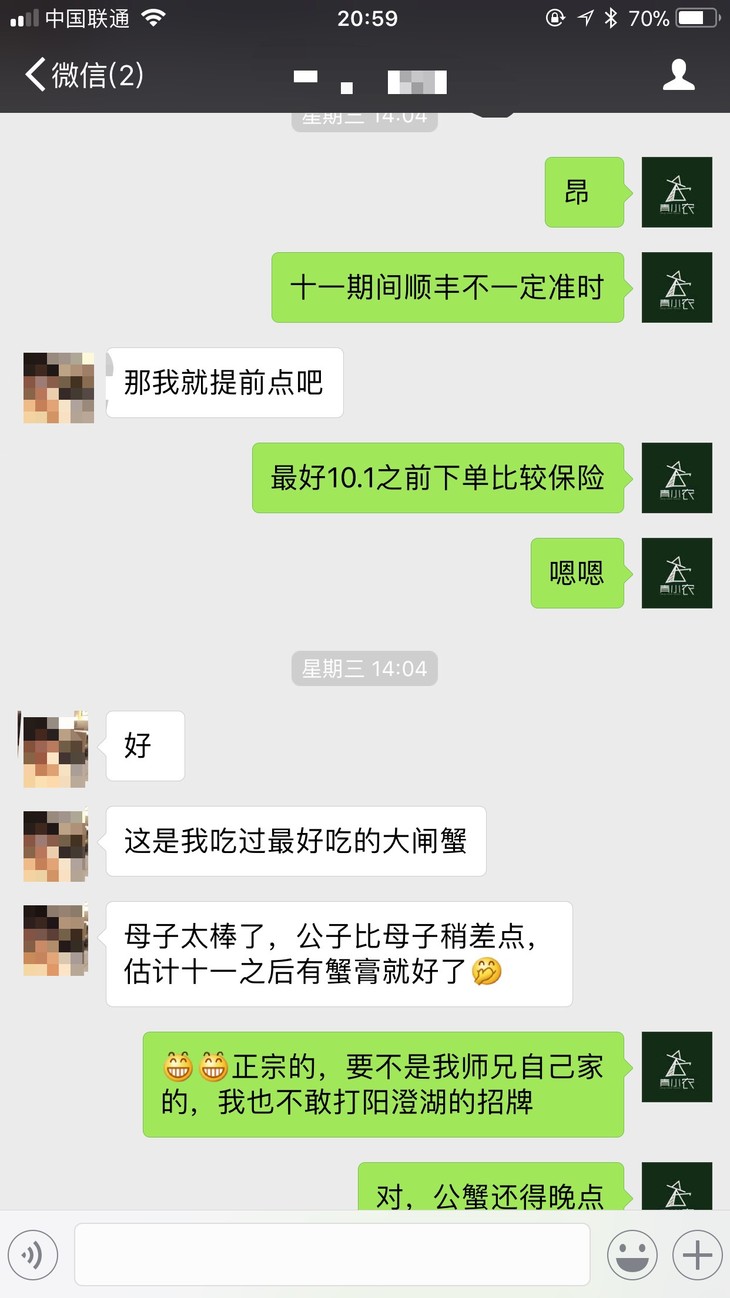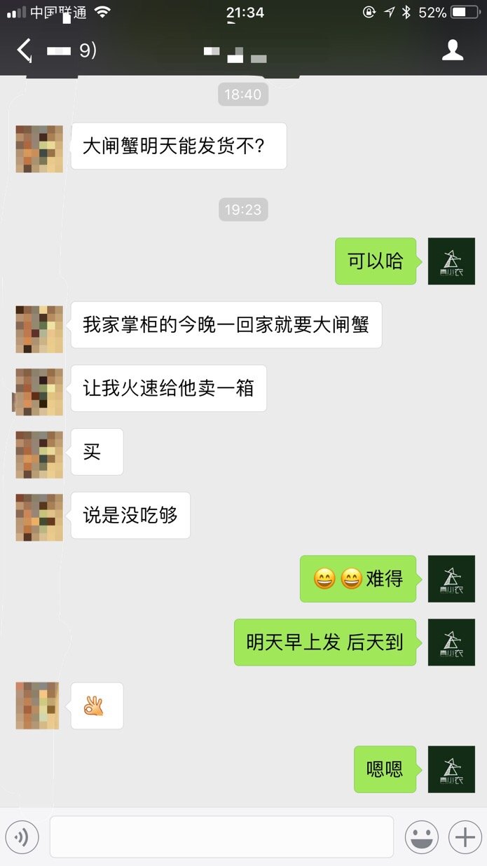 经过一段时间的了解,我认可他的人品,他也认可我的行事风格,于是在彼此认可的情形下,加之武大校友这层关系和德高望重的大师兄的背书,我们开始放下怀疑的眼光和戒心,去年秋天开始了第一次合作,产品就是正宗阳澄湖大闸蟹。