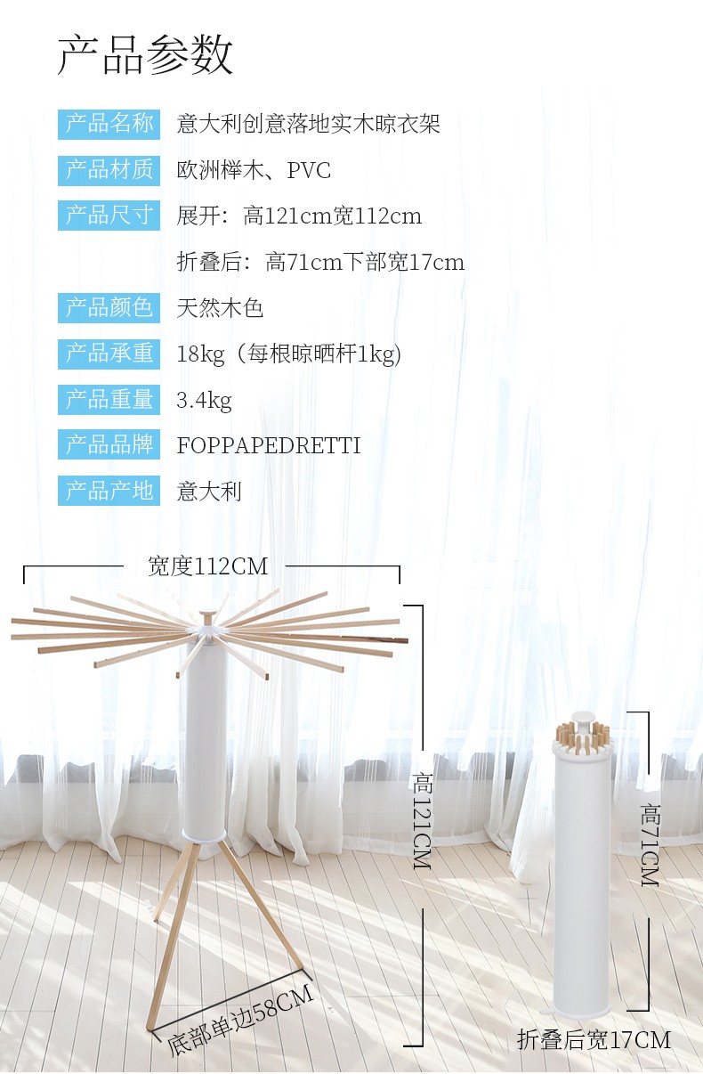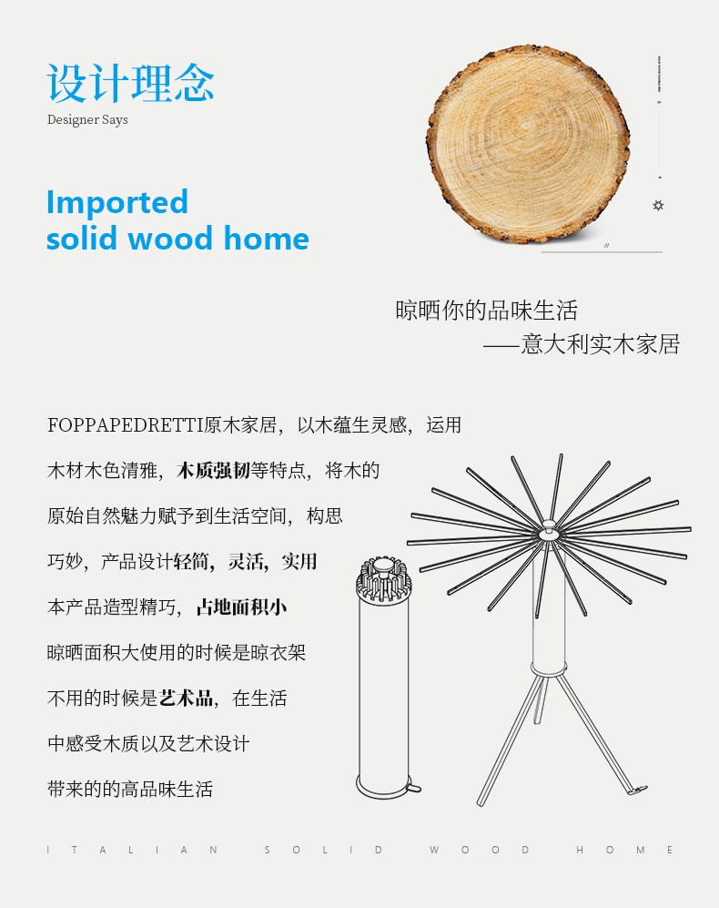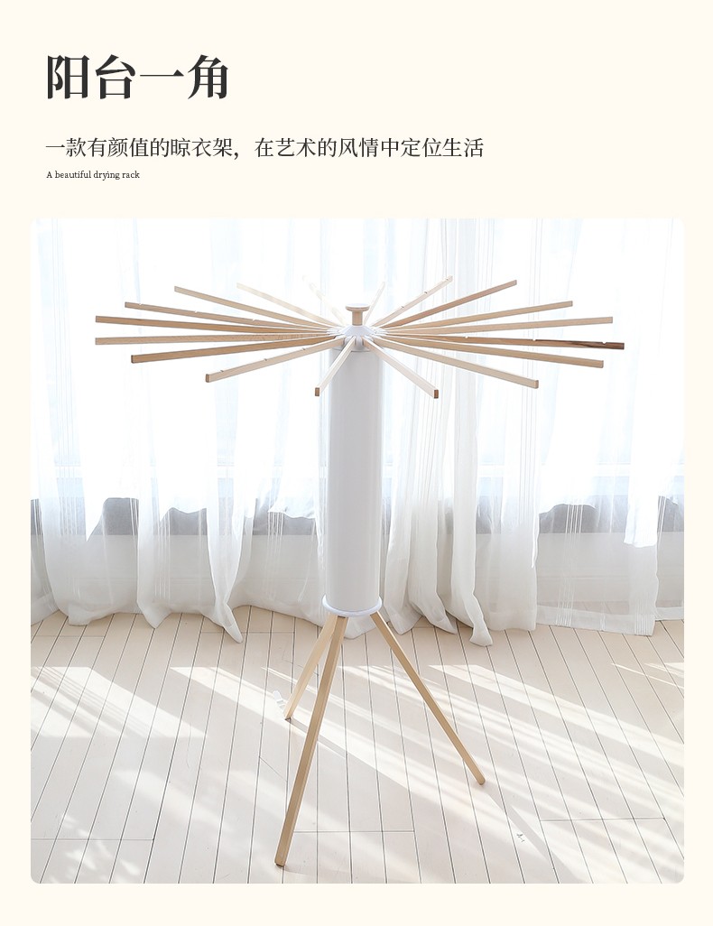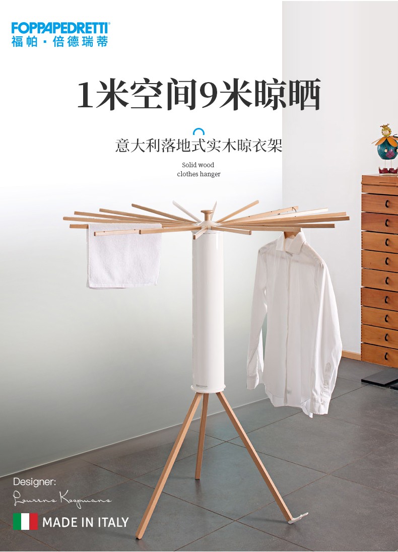 【6F】利快 落地晾衣架实木意大利进口章鱼形可折叠挂衣架阳台晒衣架