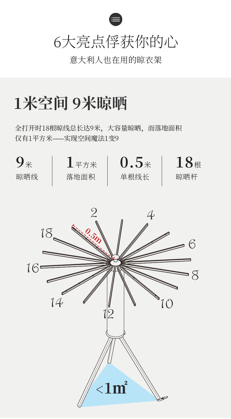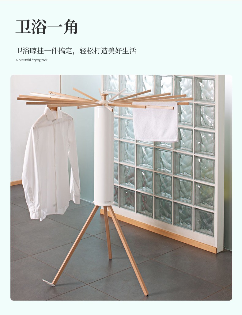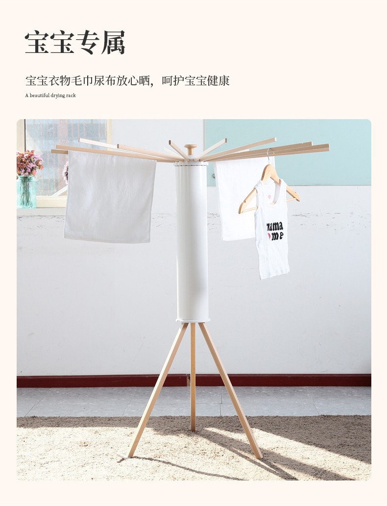 【6F】利快 落地晾衣架实木意大利进口章鱼形可折叠挂衣架阳台晒衣架