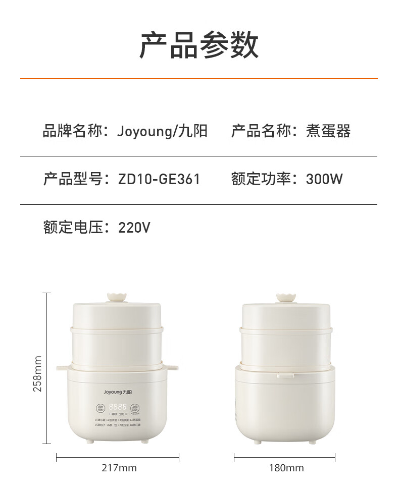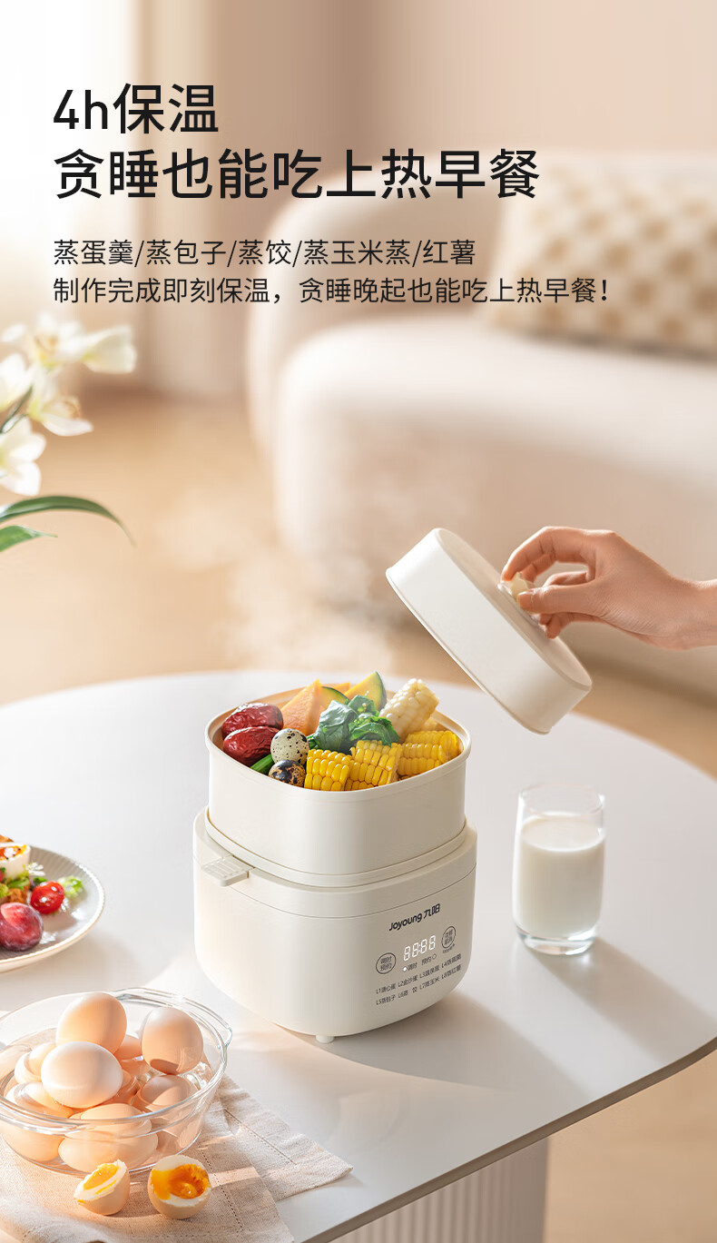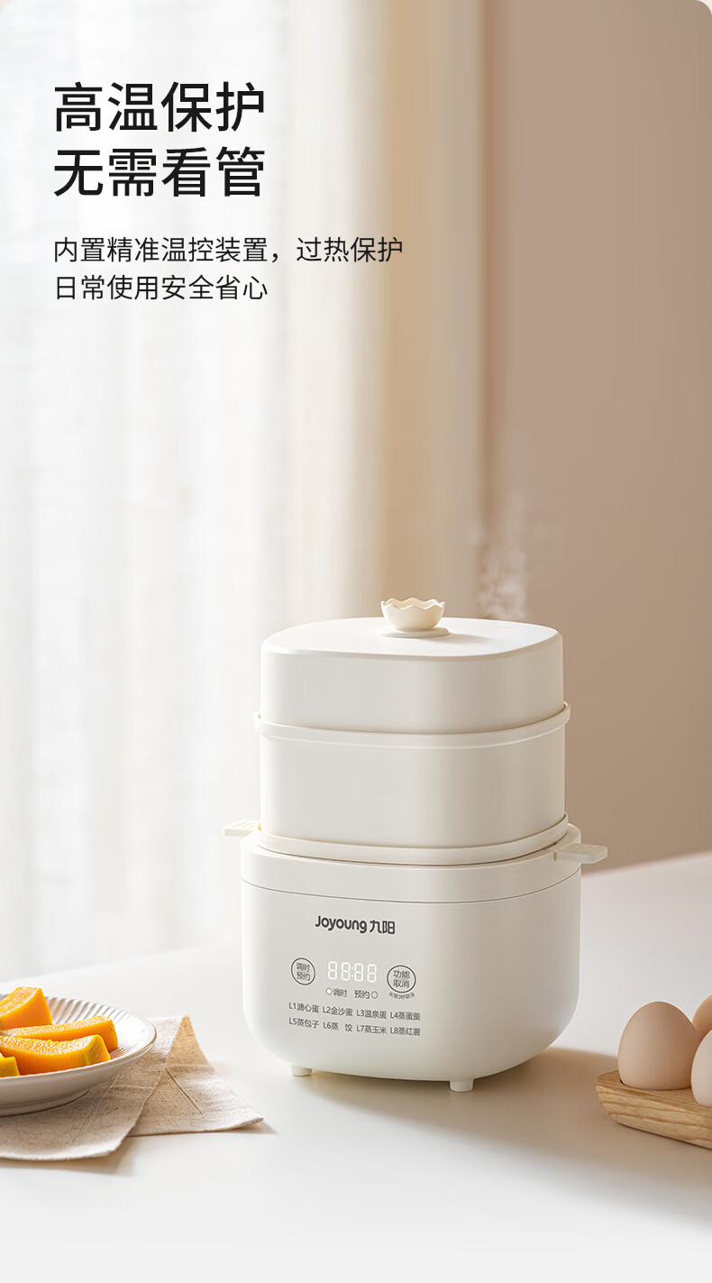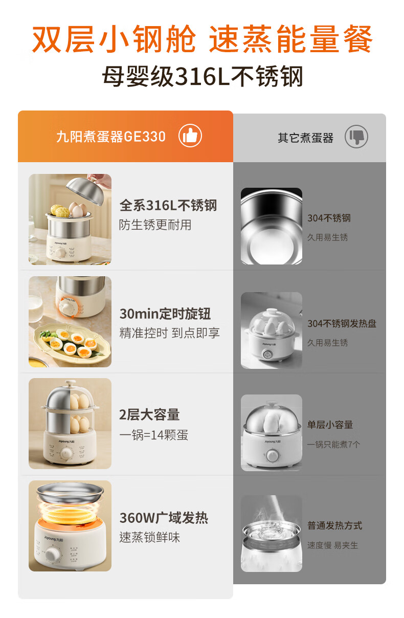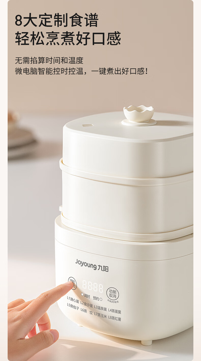 九阳煮蛋器不锈钢双层蒸蛋器定时多功能家用小型电蒸锅蛋羹早餐机