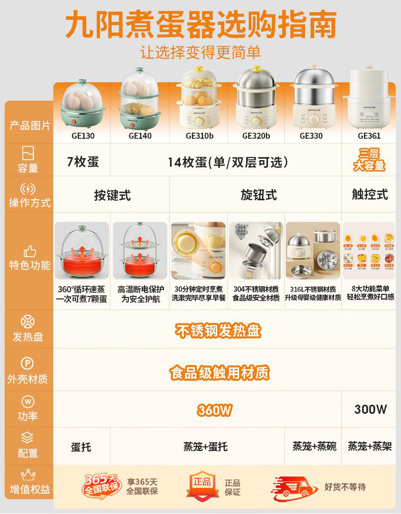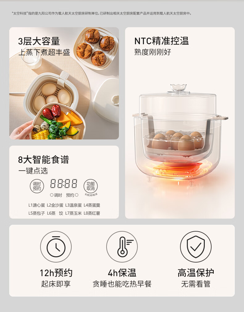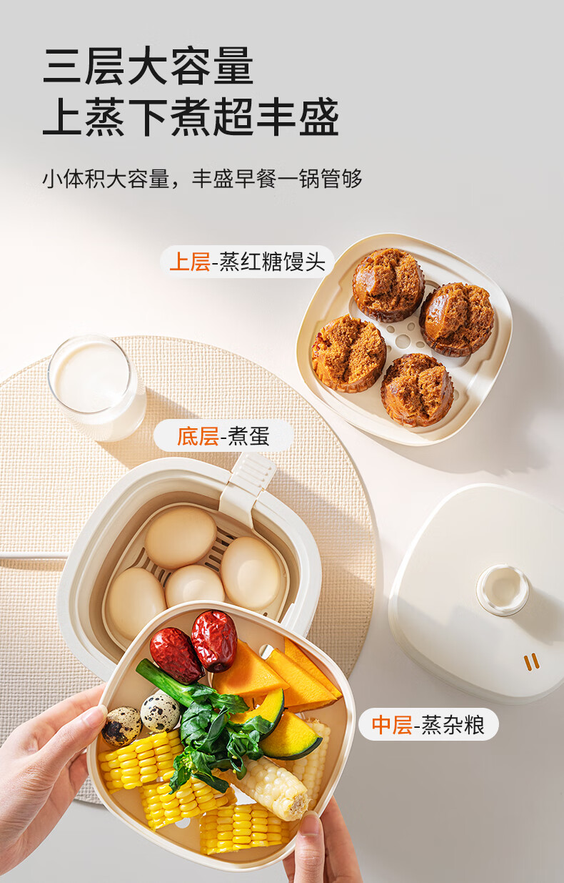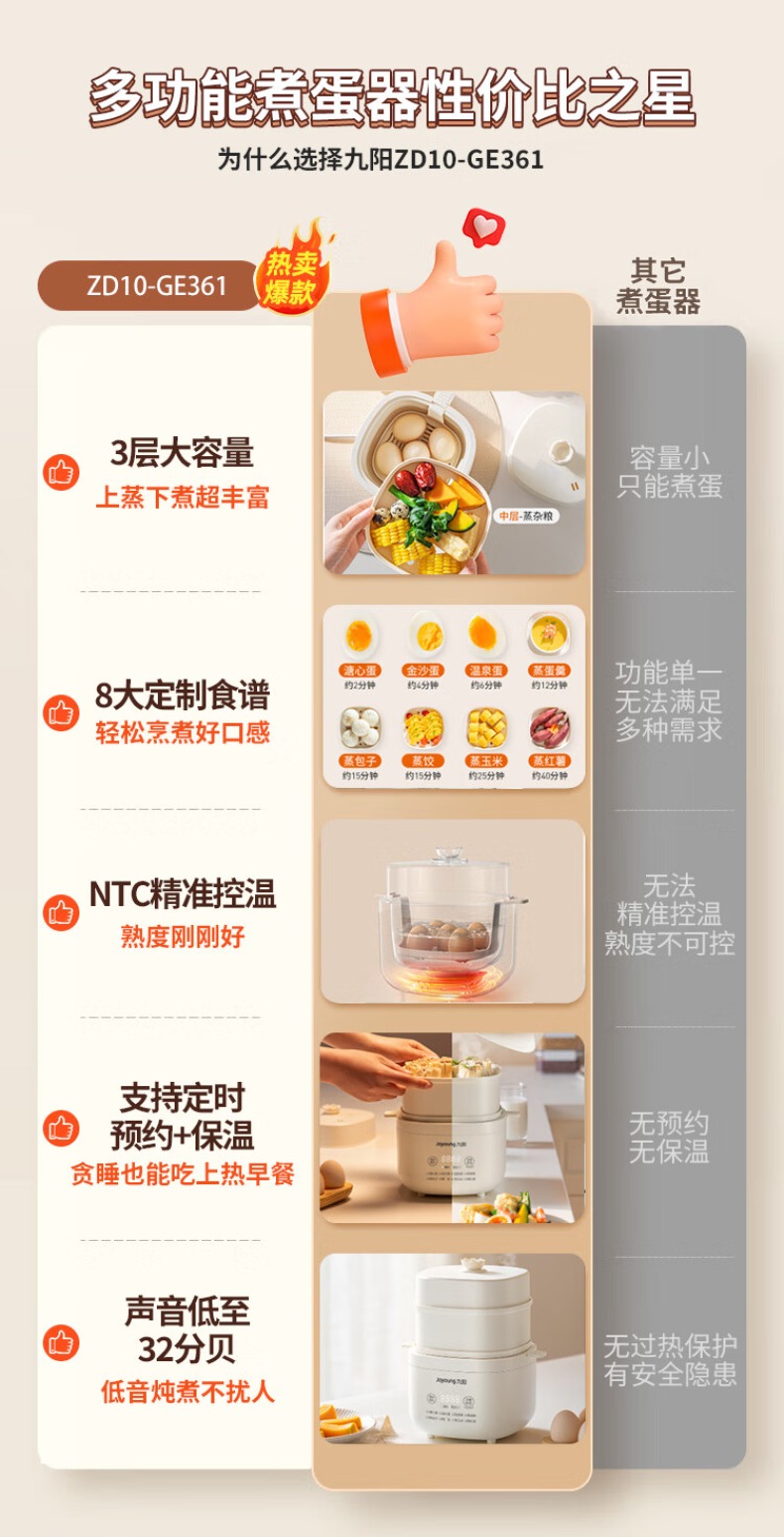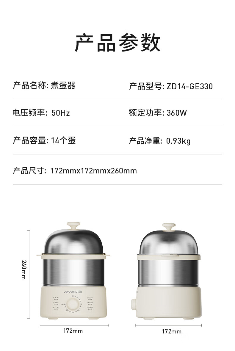 九阳煮蛋器不锈钢双层蒸蛋器定时多功能家用小型电蒸锅蛋羹早餐机