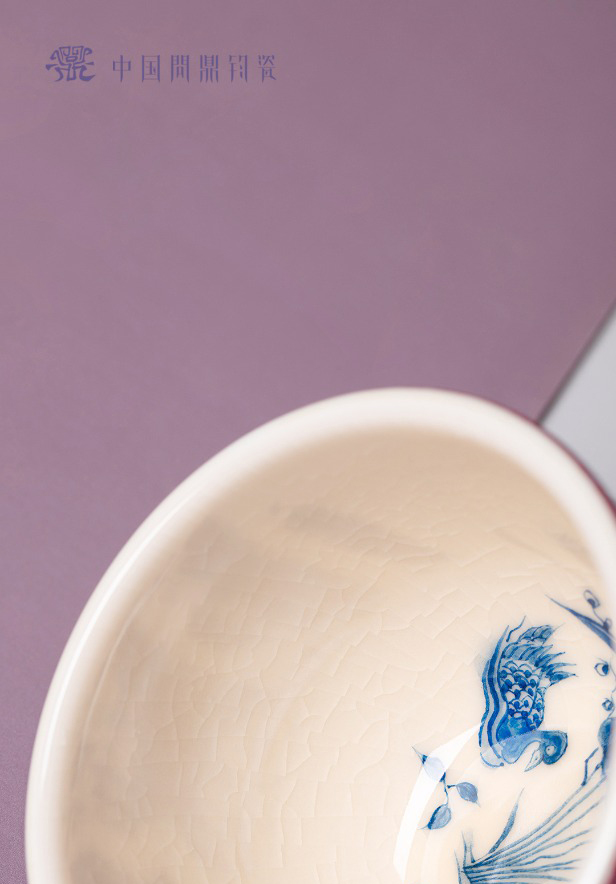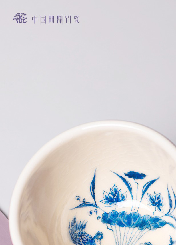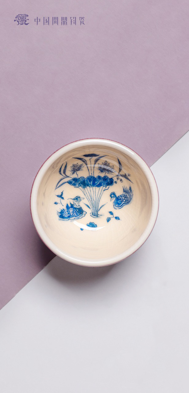 问鼎钧瓷鹅黄青花风水缸杯(鸳鸯永好)