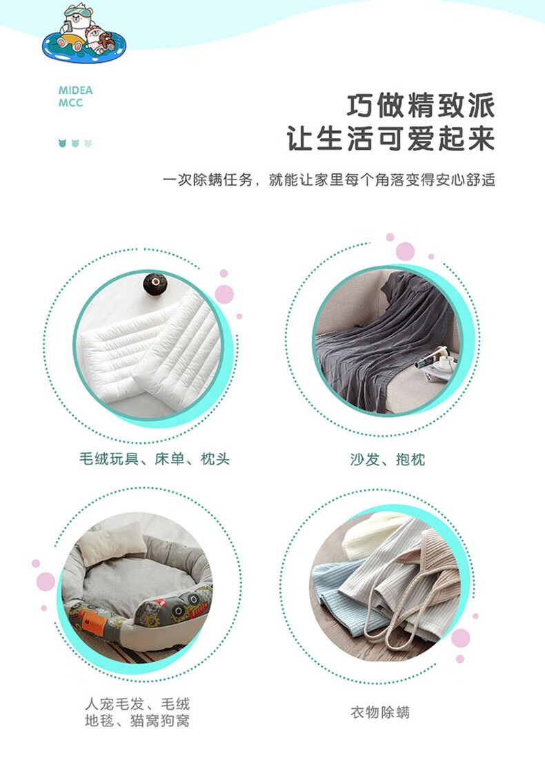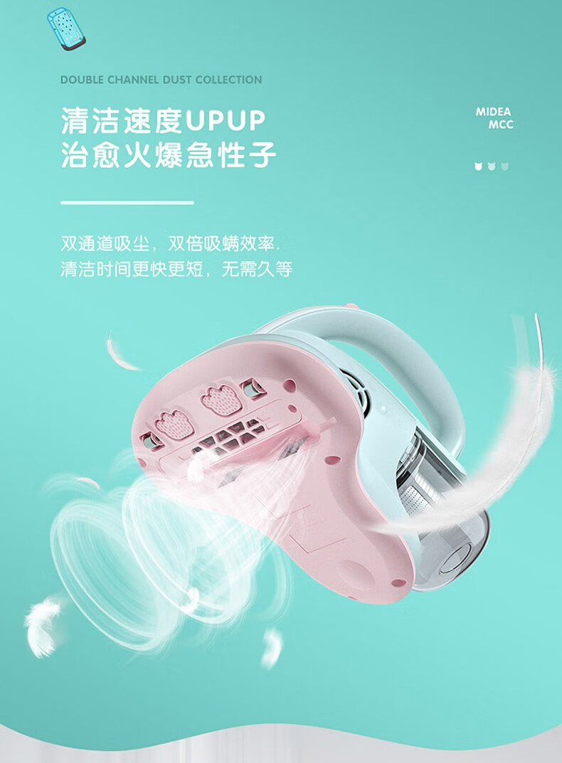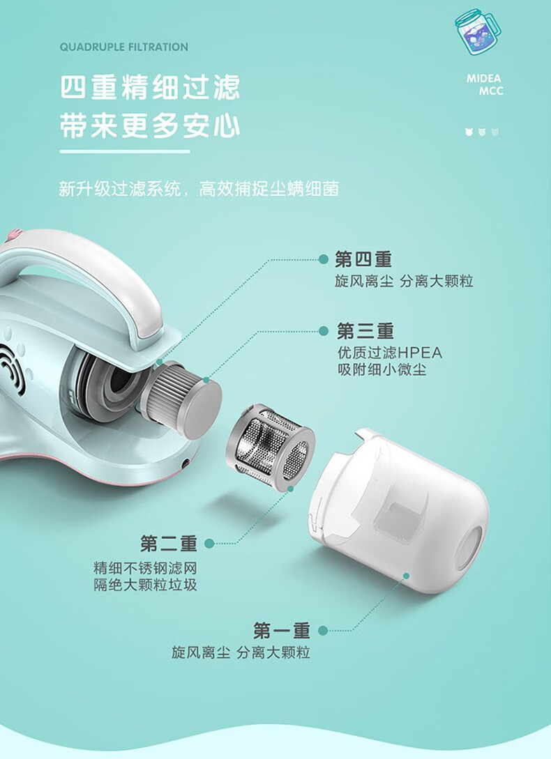 美的(Midea)除螨仪MCC 有线手持床上家用 紫外线高频拍打低噪音 大吸口 四重过滤