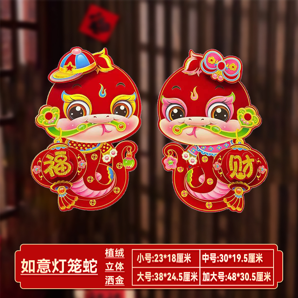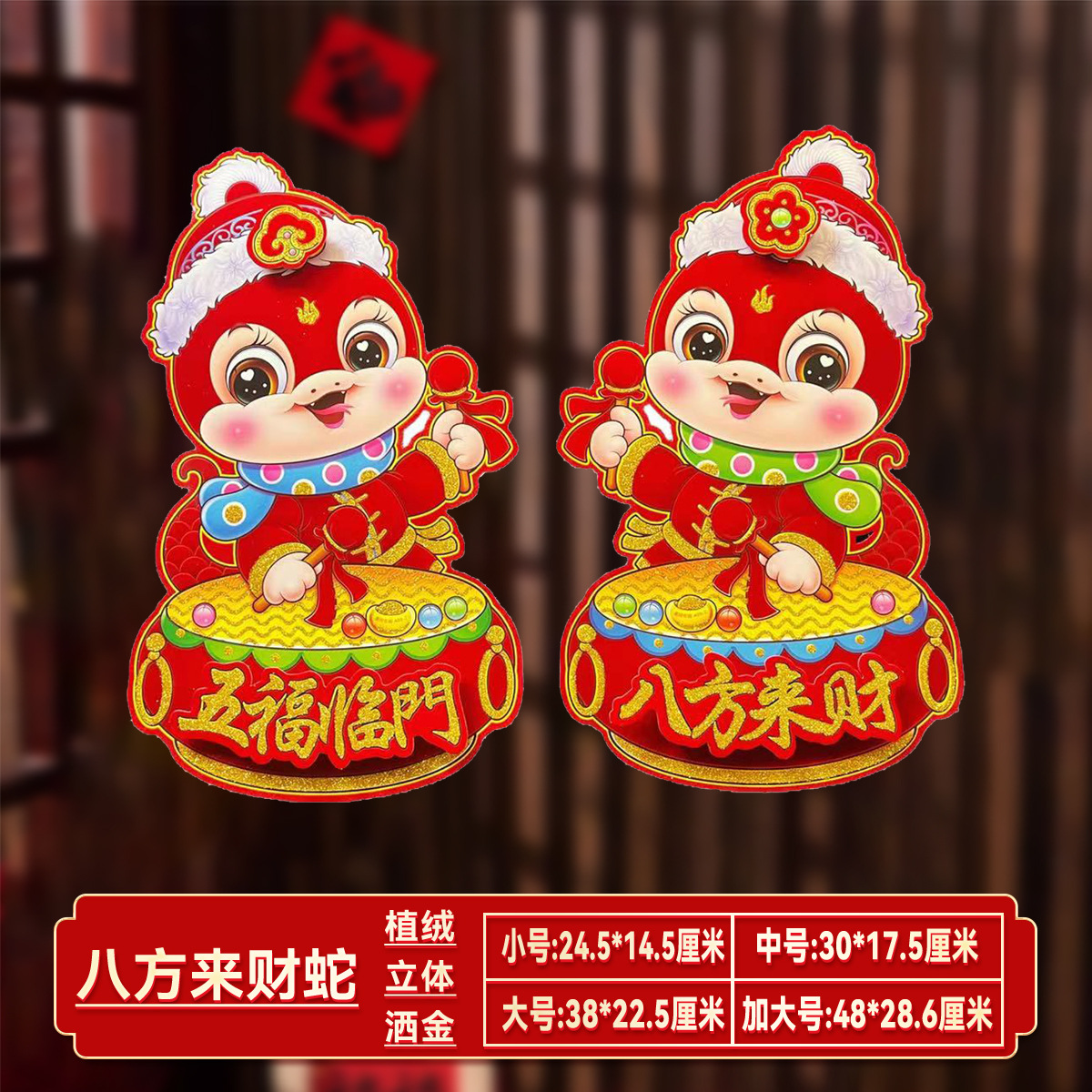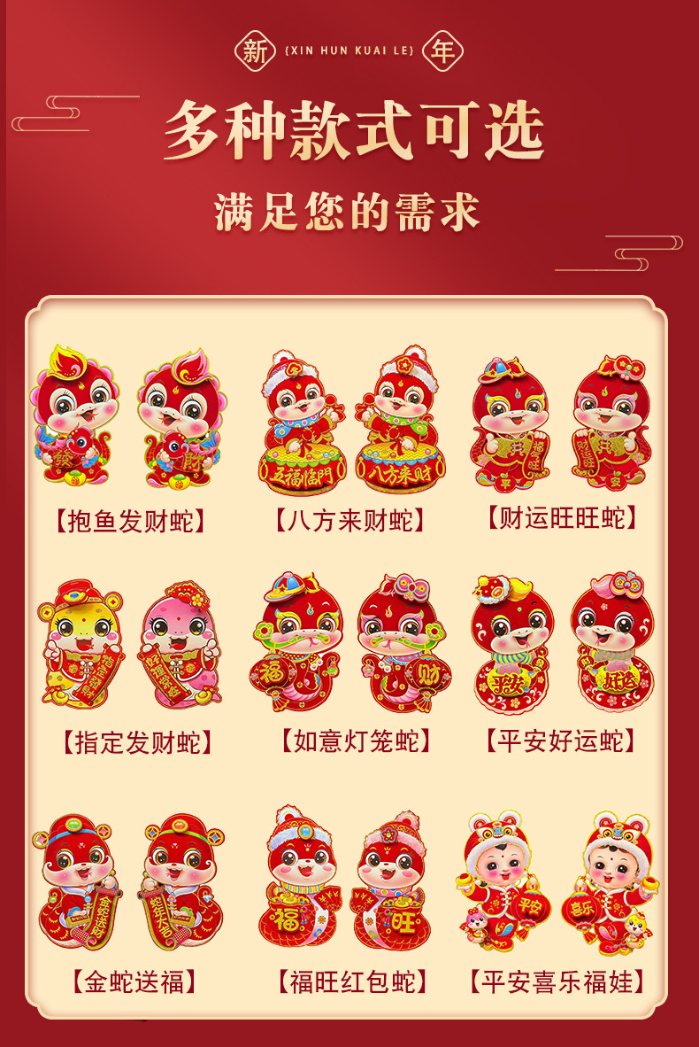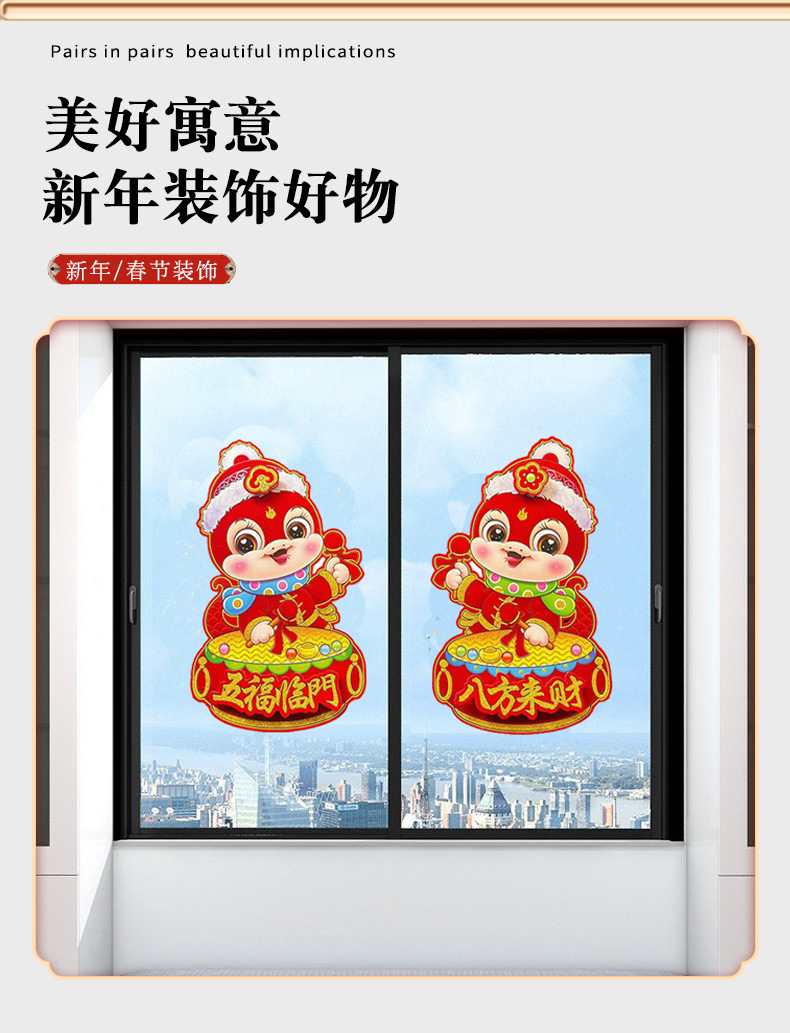 【买一送一!马年立体生肖门贴】闪亮福字,福气满满,财源滚滚来!2025年装饰品对贴过年贴纸春节卡通年画,