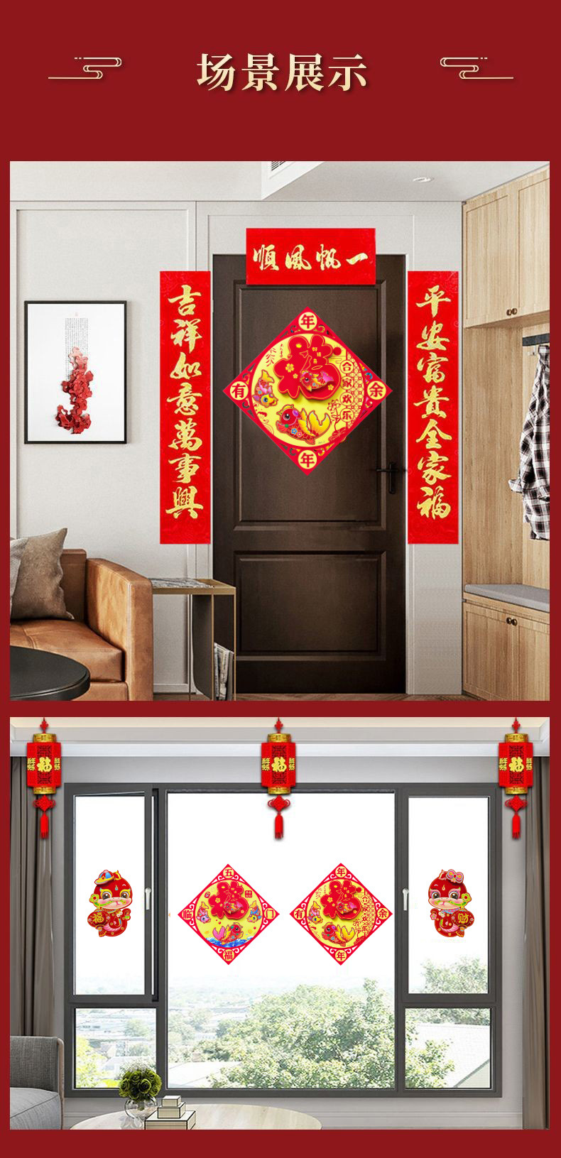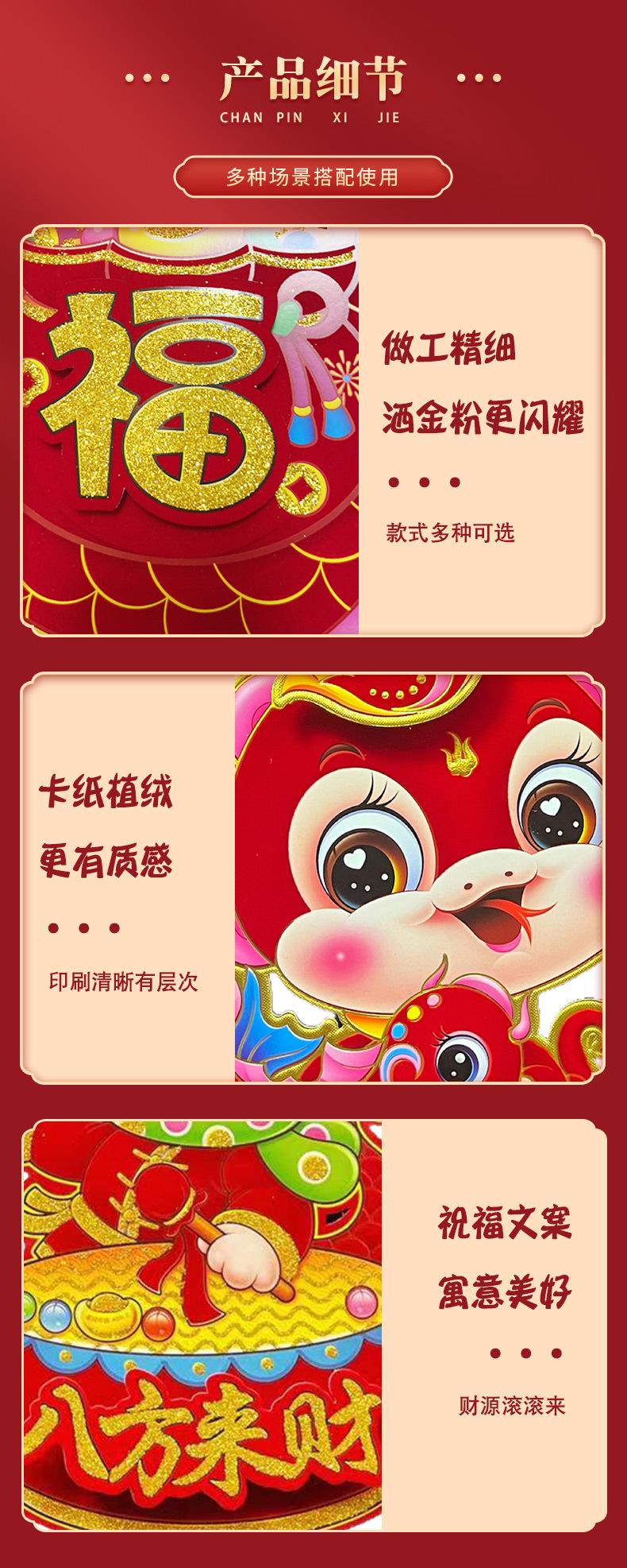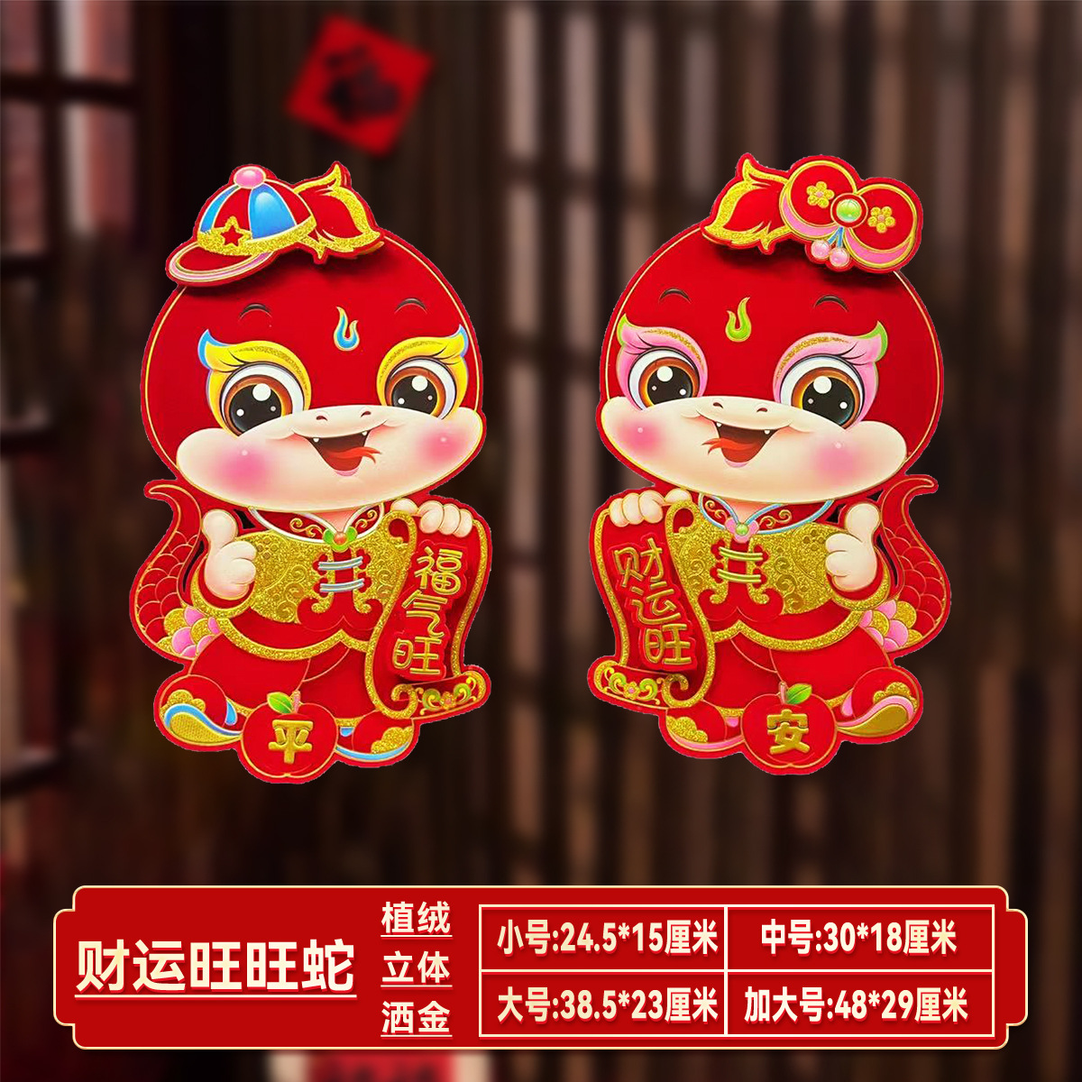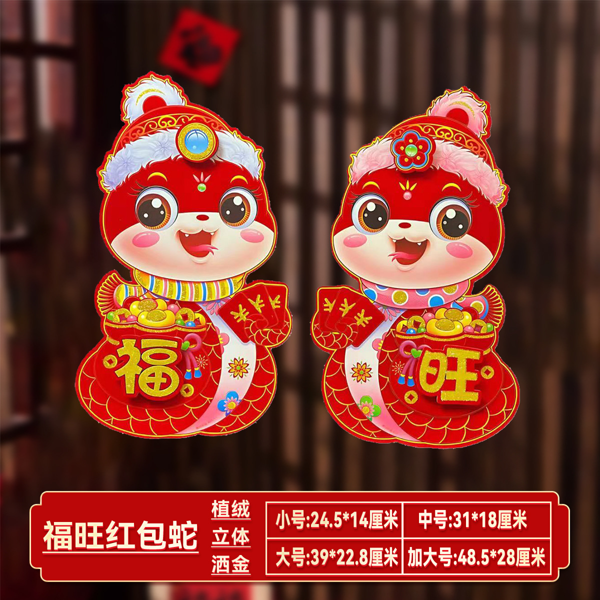 【买一送一!马年立体生肖门贴】闪亮福字,福气满满,财源滚滚来!2025年装饰品对贴过年贴纸春节卡通年画,