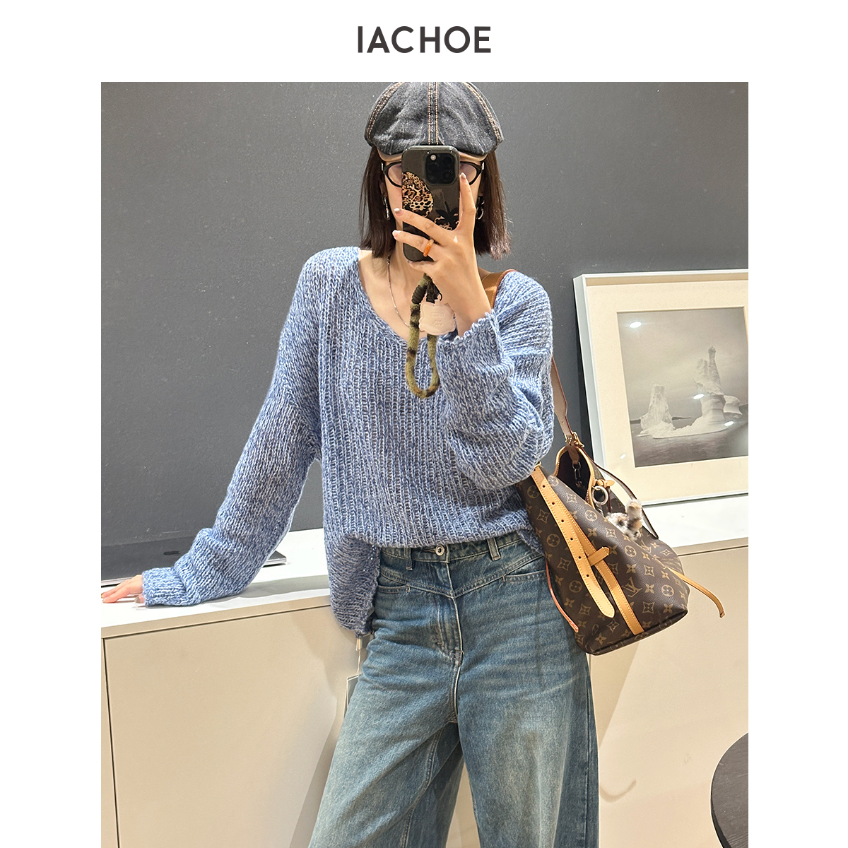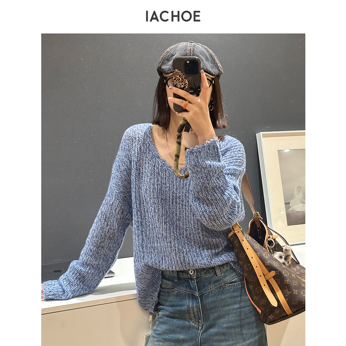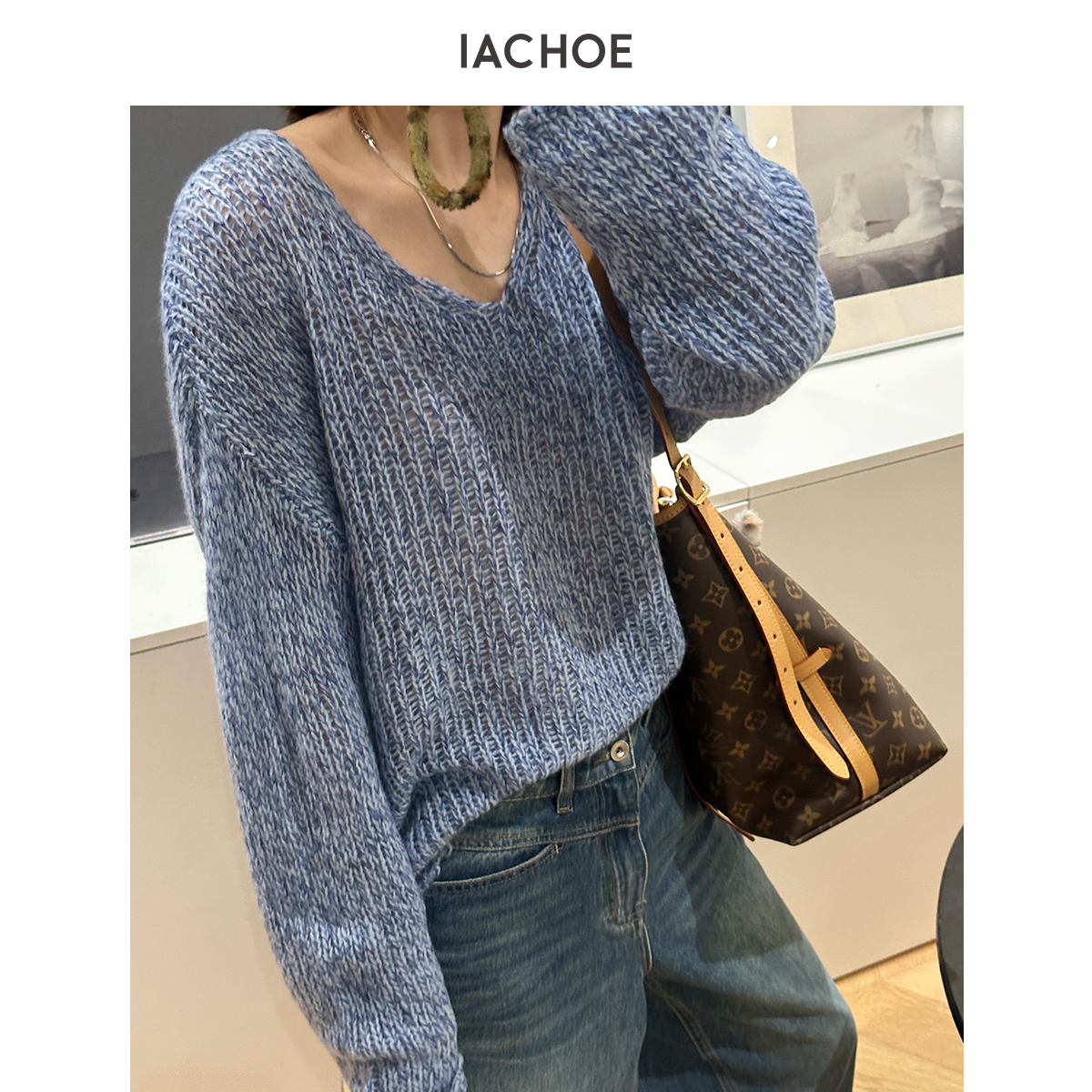 棉仓3671505011-花纱v领含羊绒慵懒毛衣