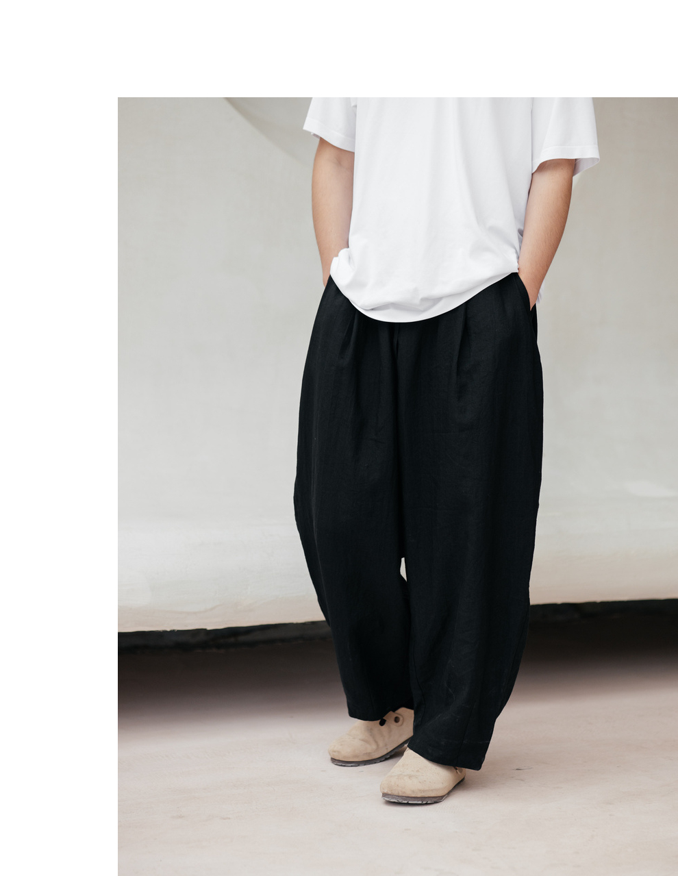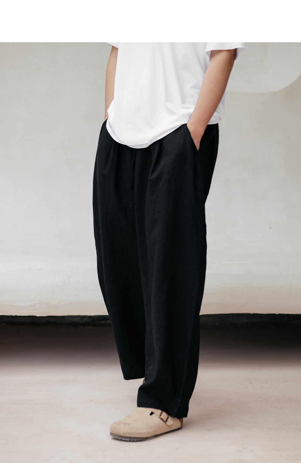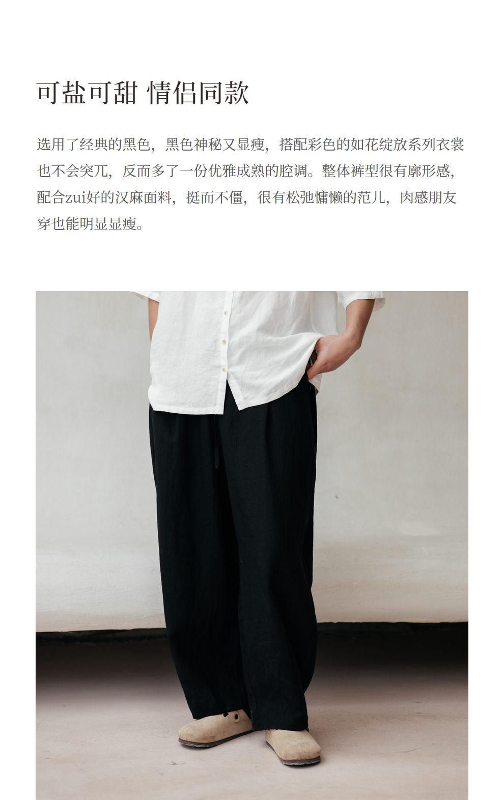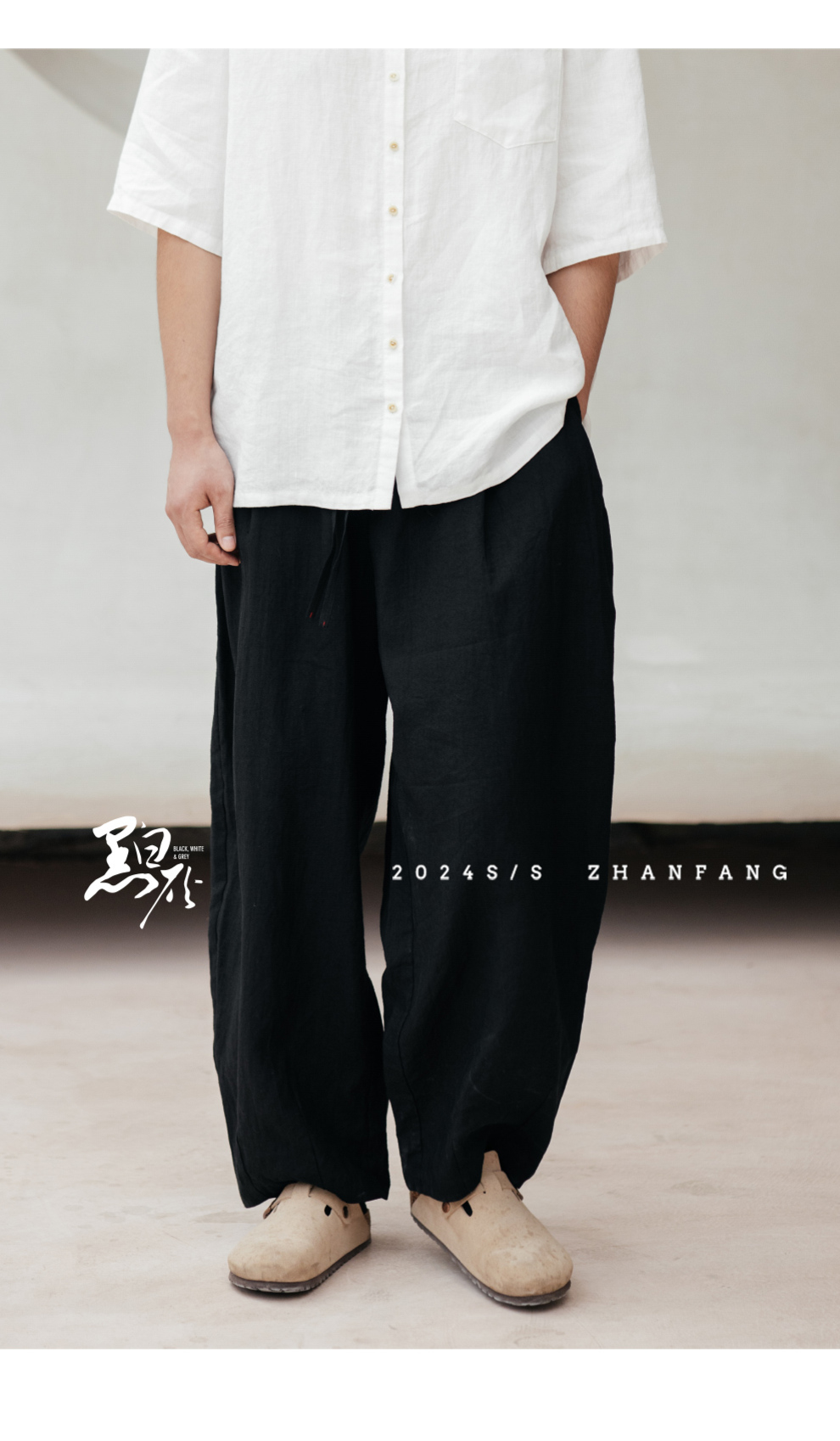 绽放605朵【黑白灰】2025汉麻黑色弯刀阔腿裤显瘦百搭男装休闲裤
